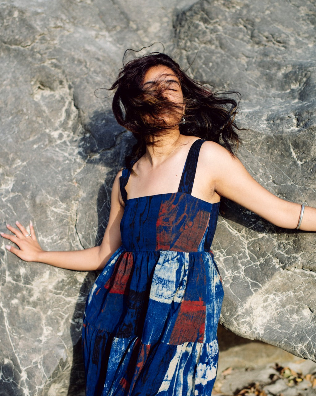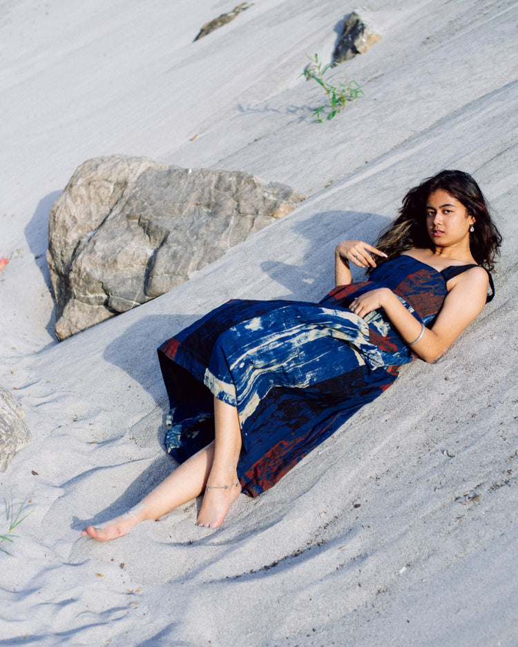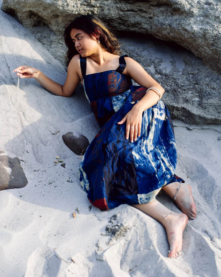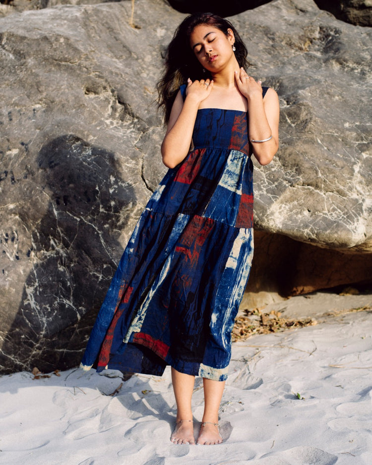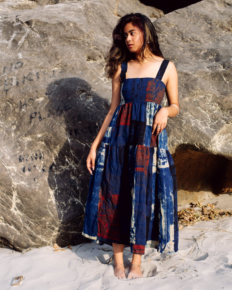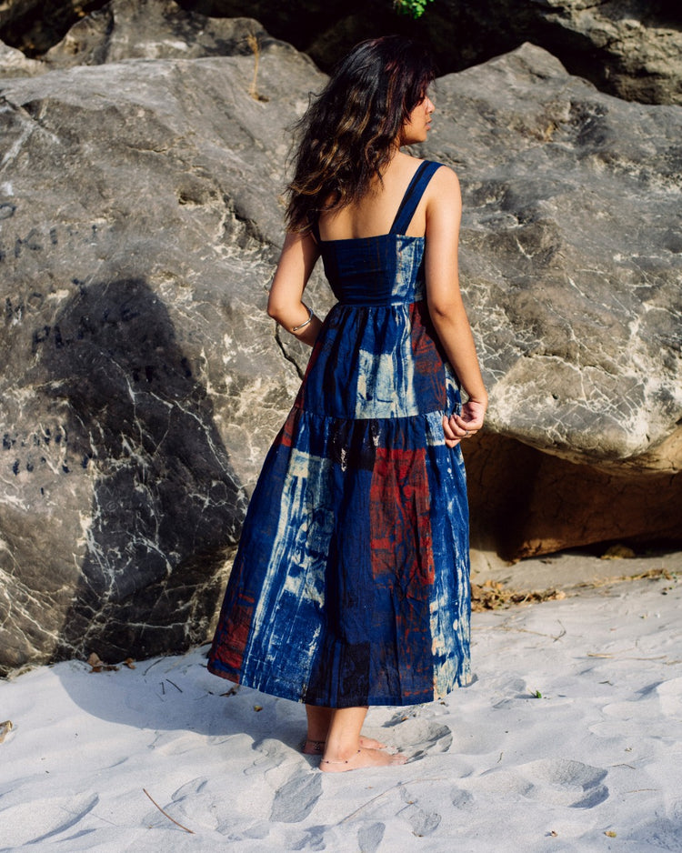 BLUE HANDPAINTED AJRAKH MAXI DRESS