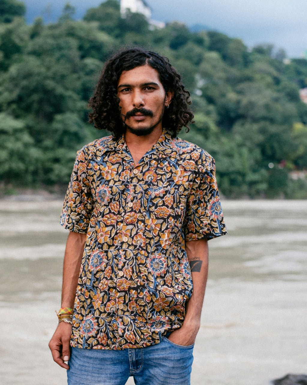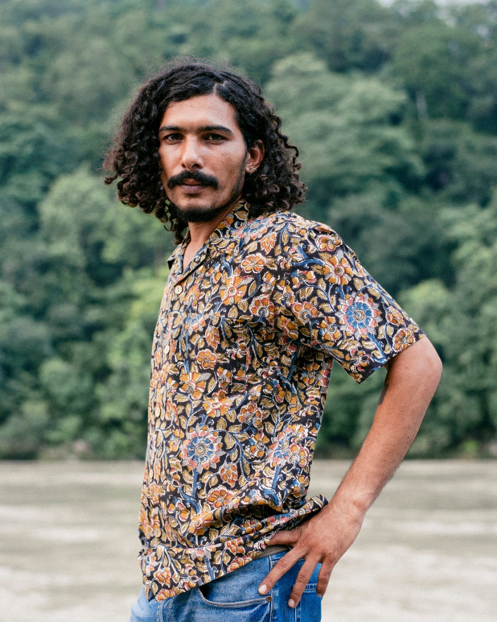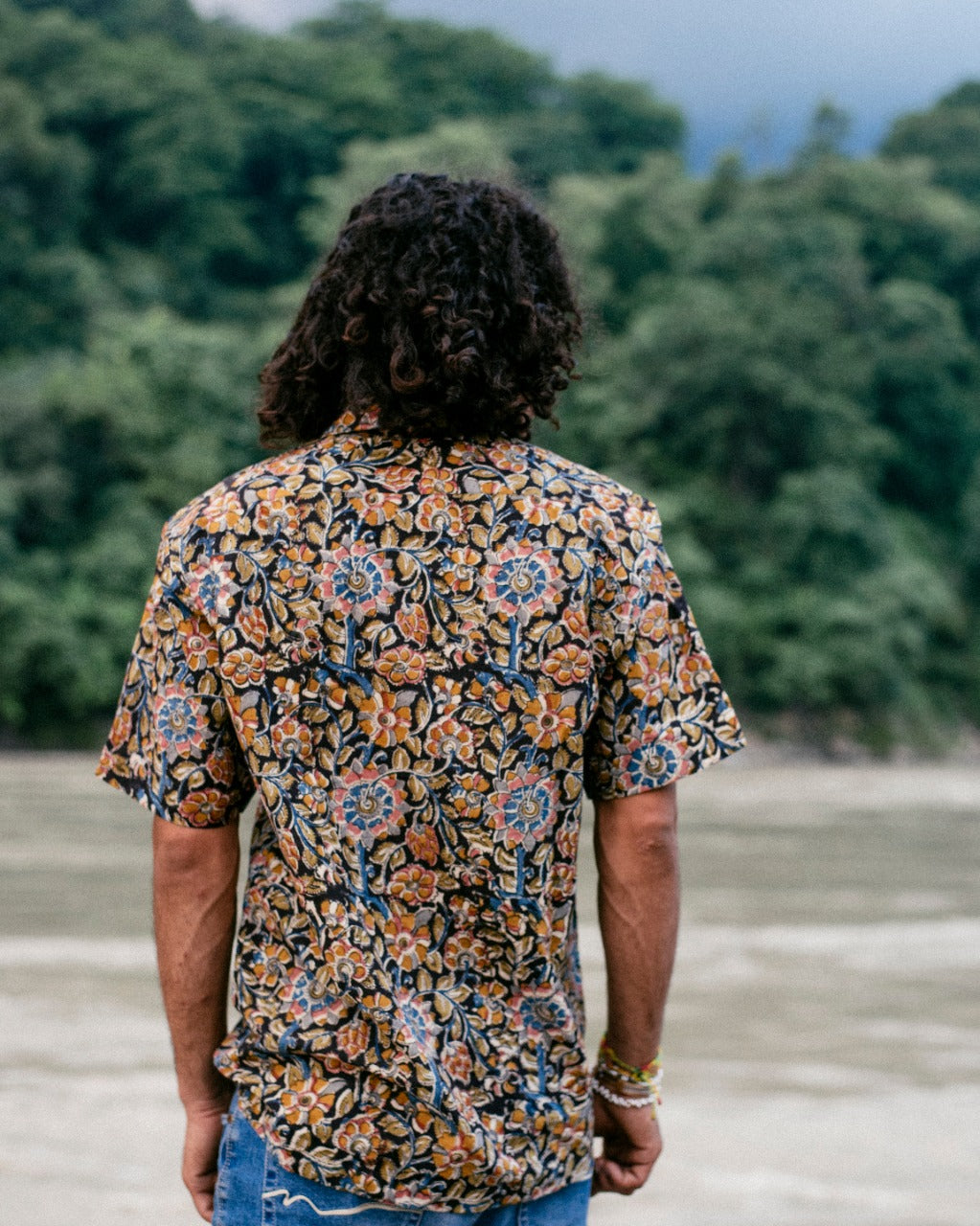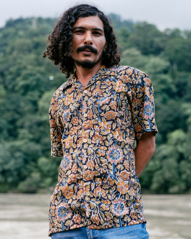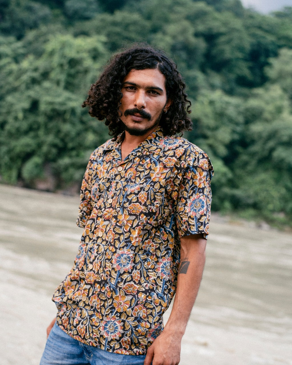 BLACK CRAYON FLORAL BAGRU SHIRT