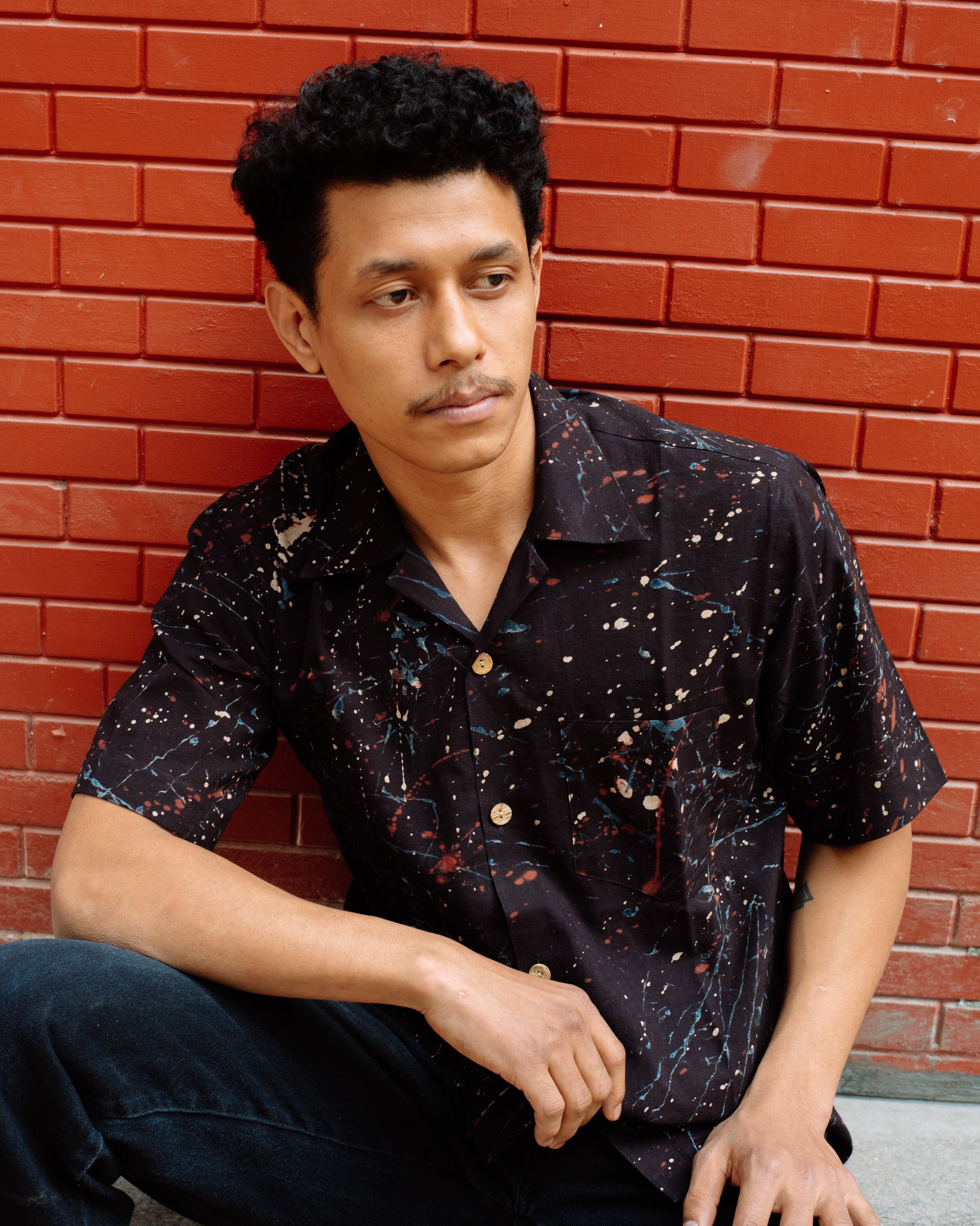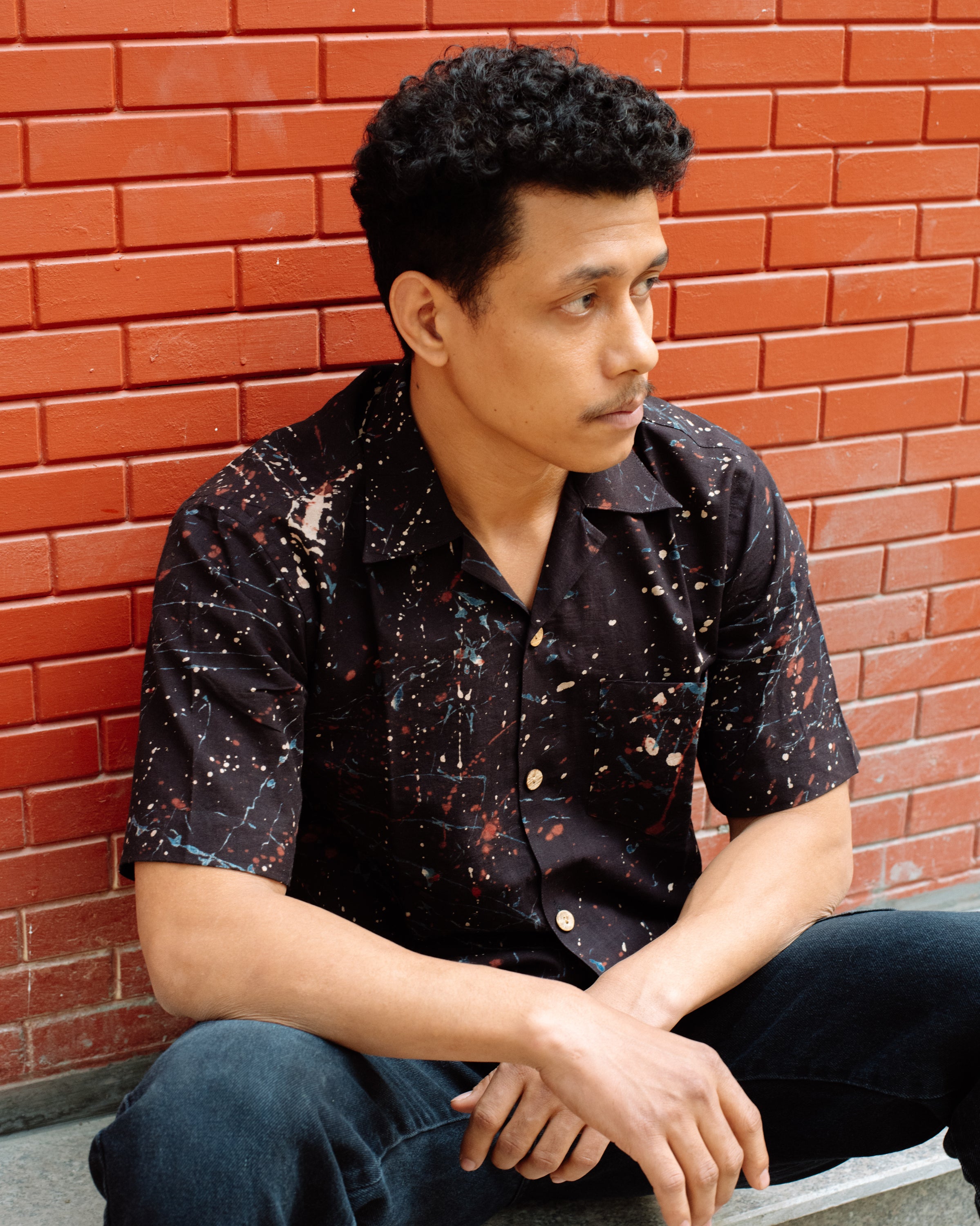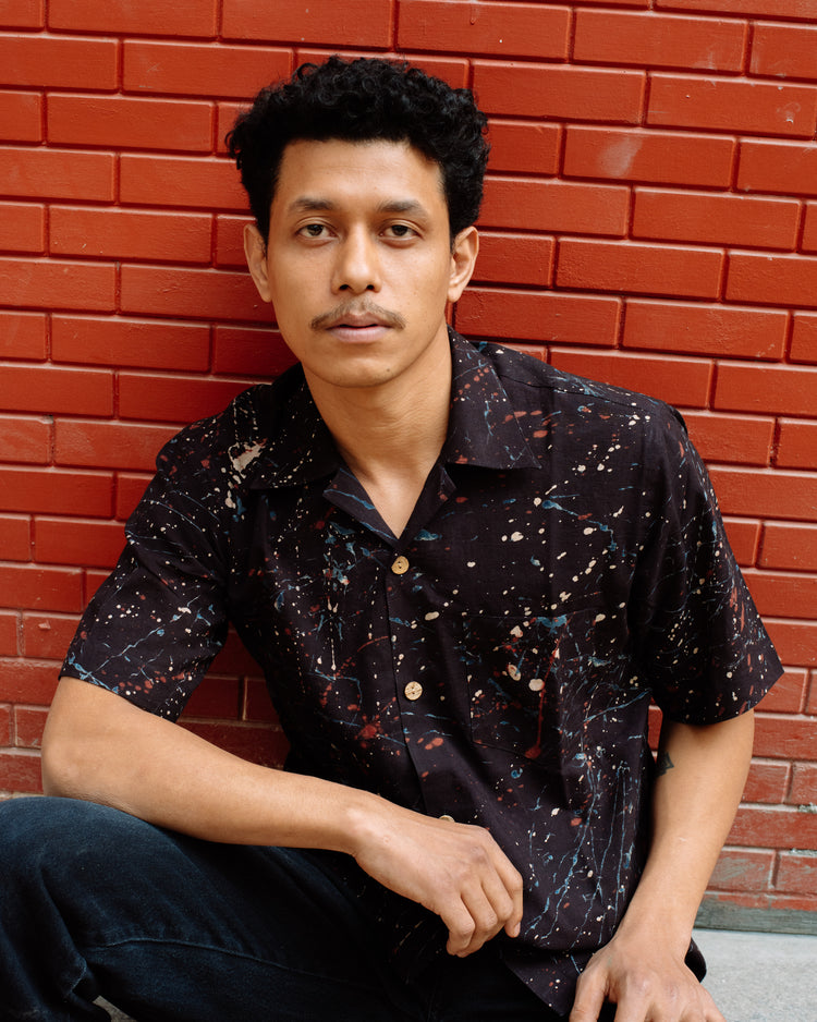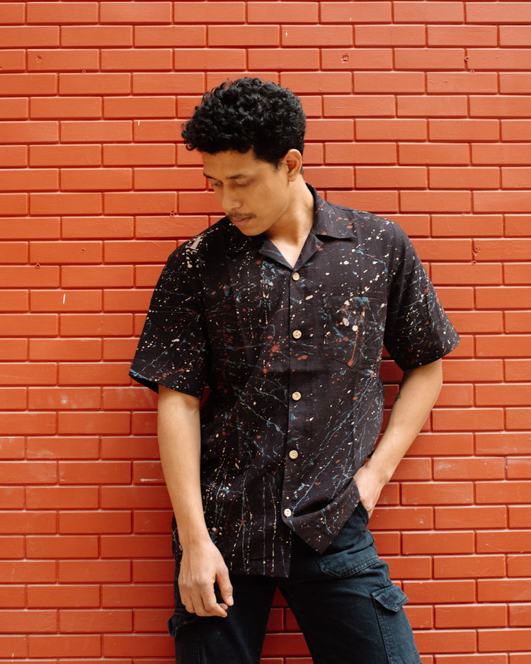 BLACK PAINT SPLATTER AJRAKH SHIRT