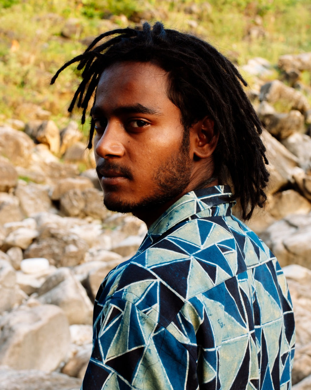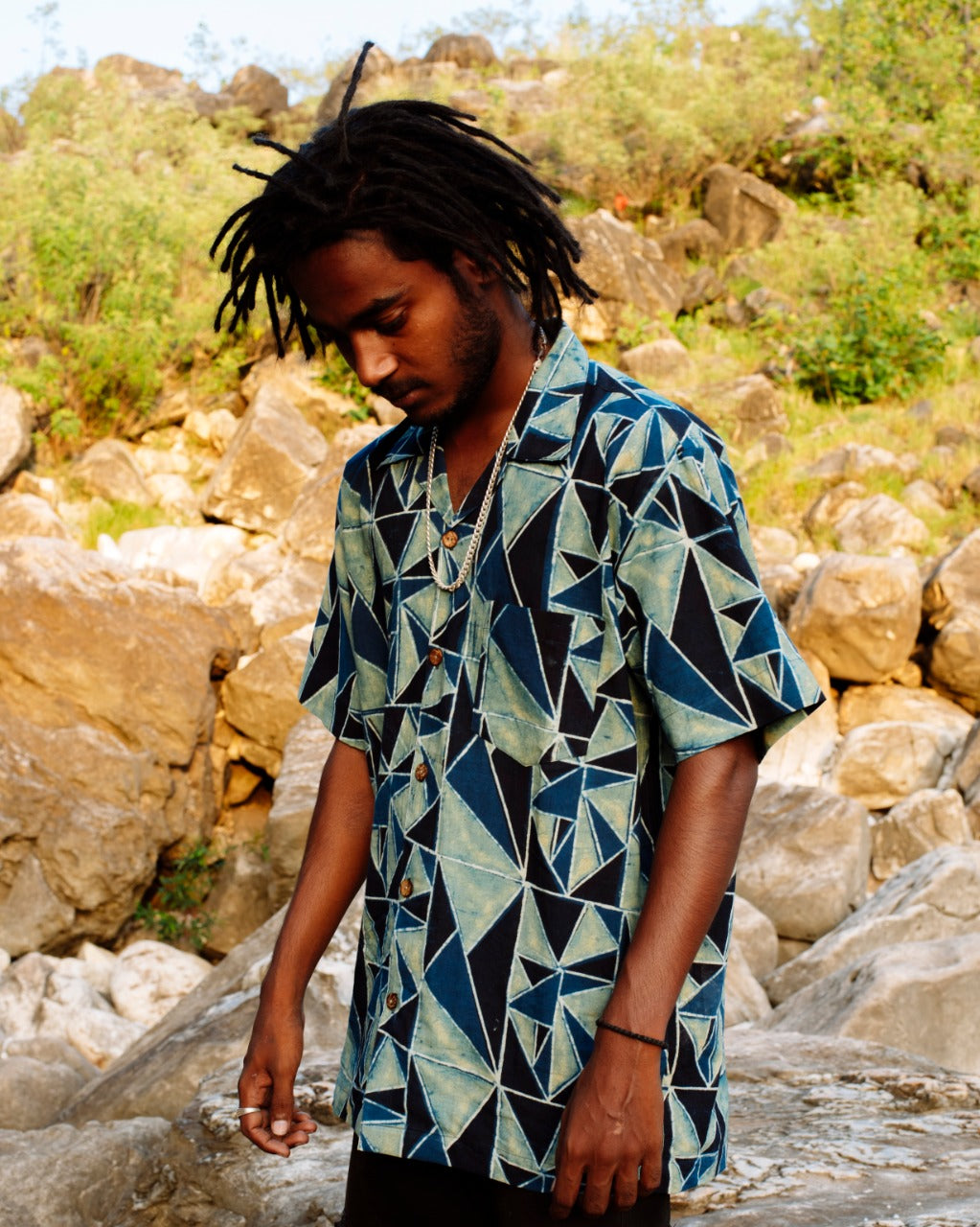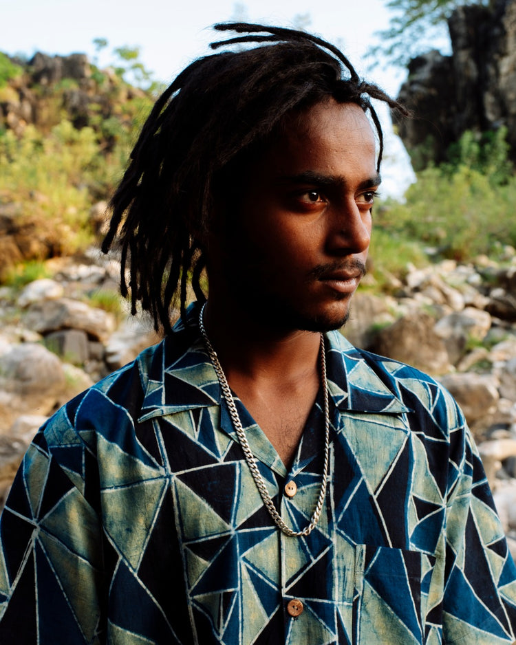 Ajrakh, an indigenous textile from India's western states, features geometric designs and patterns block printed by stamps. The procedure uses vegetables and other natural dyes to represent the history and legacy of India's historic artisan community.