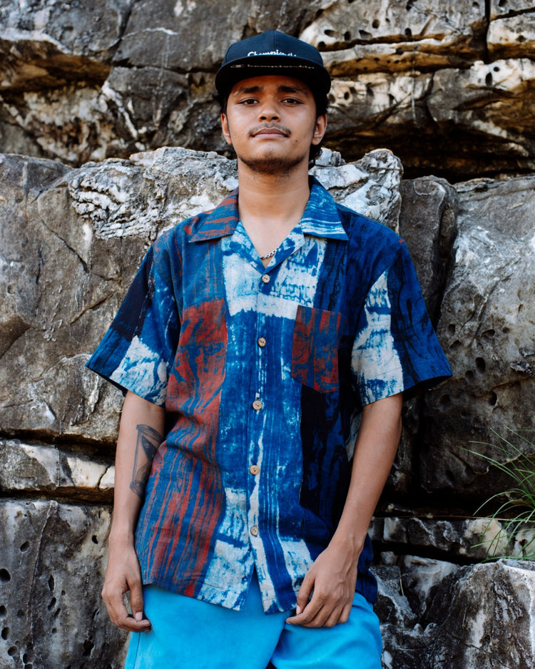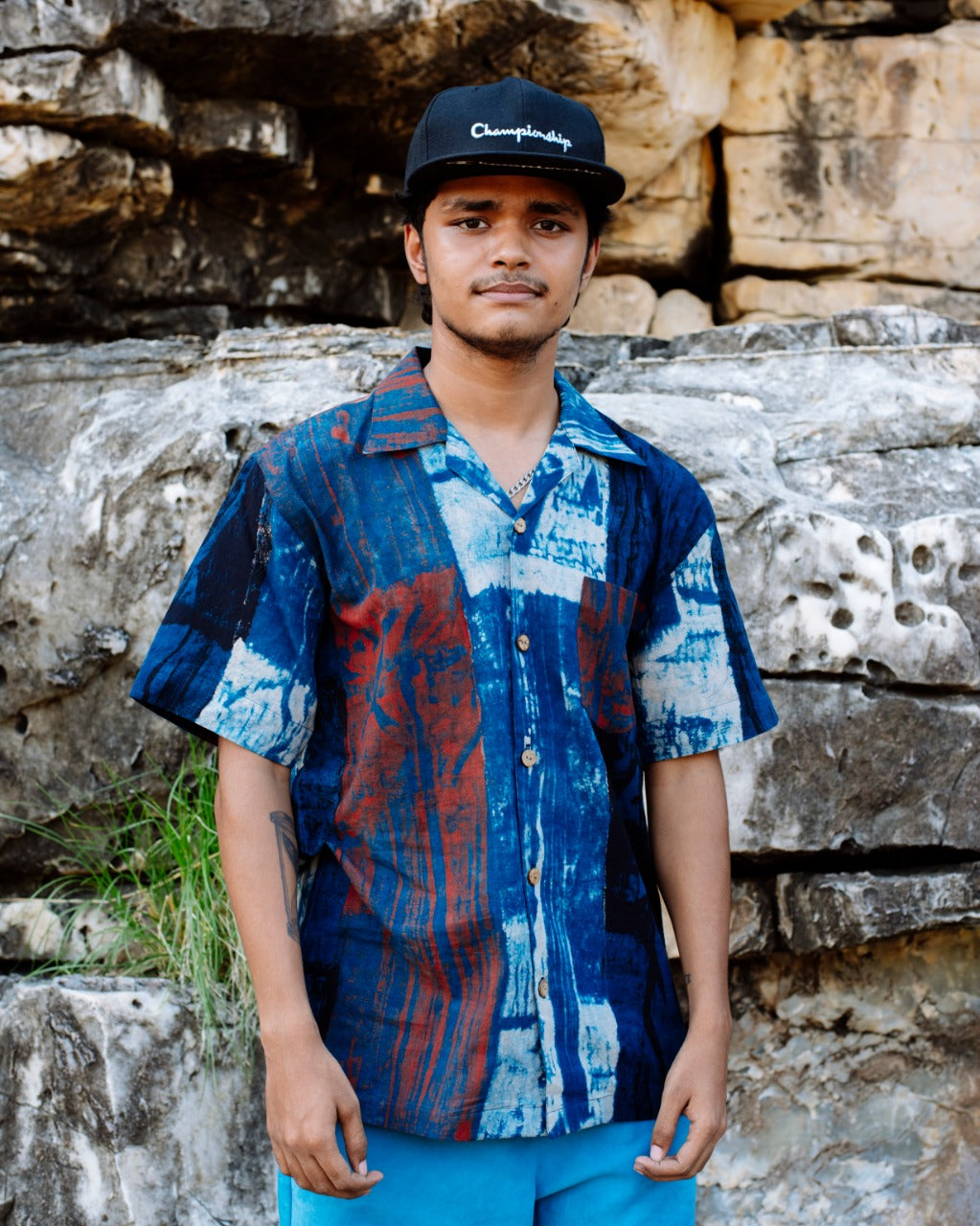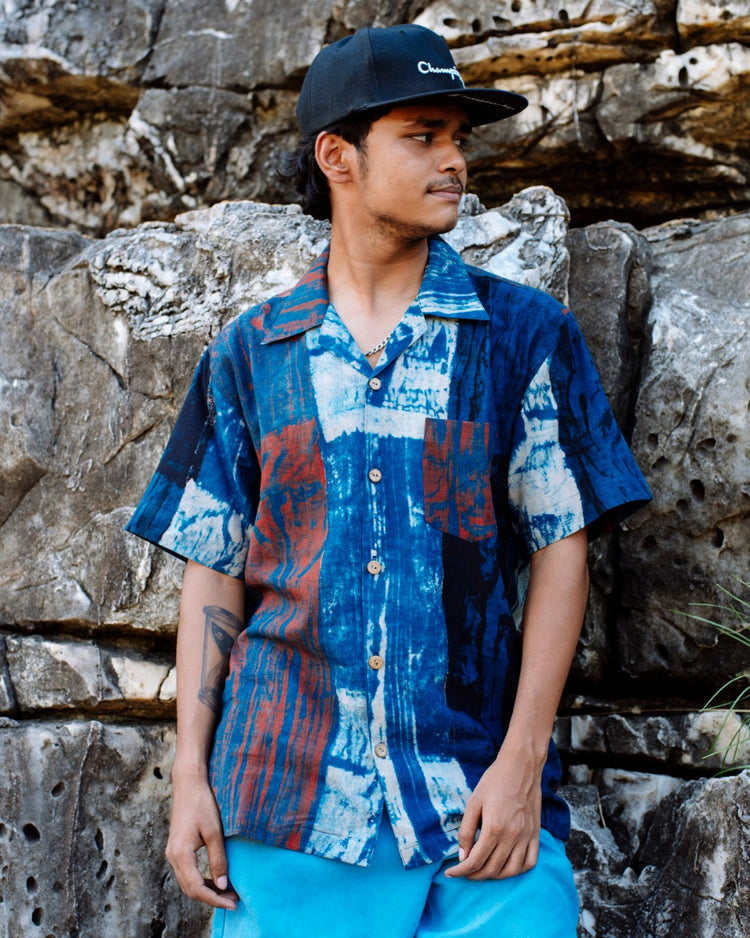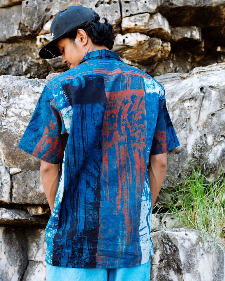 BLUE HANDPAINTED AJRAKH SHIRT