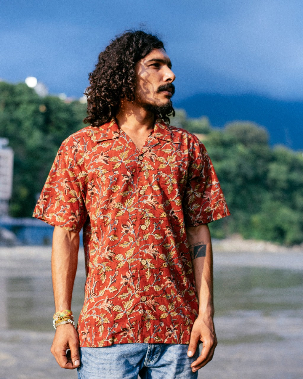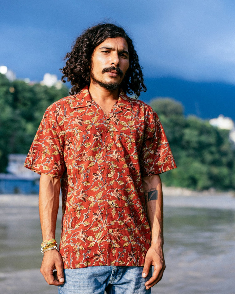 BRICK RED FLORAL BAGRU SHIRT