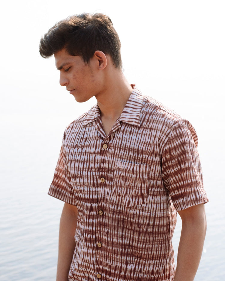 Shibori is a Japanese dyeing method that includes folding, twisting, or bunching cloth and binding it before dying it in various natural hues. Whatever is used to bind the fabric will resist the dye, resulting in portions of the cloth taking the distinctive colour in patterns generated by the resistance and other areas of the cloth remaining white.