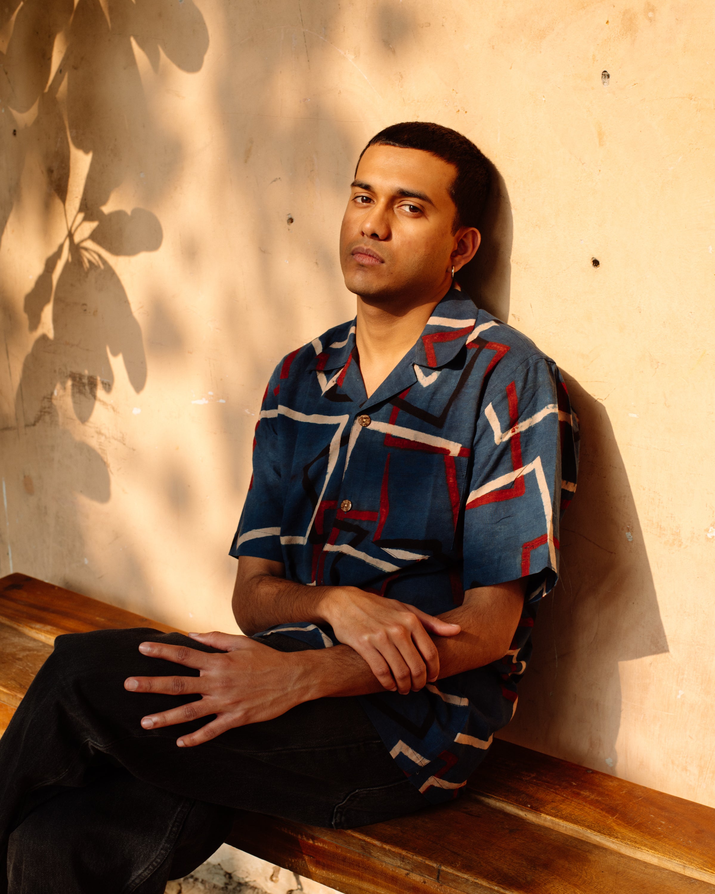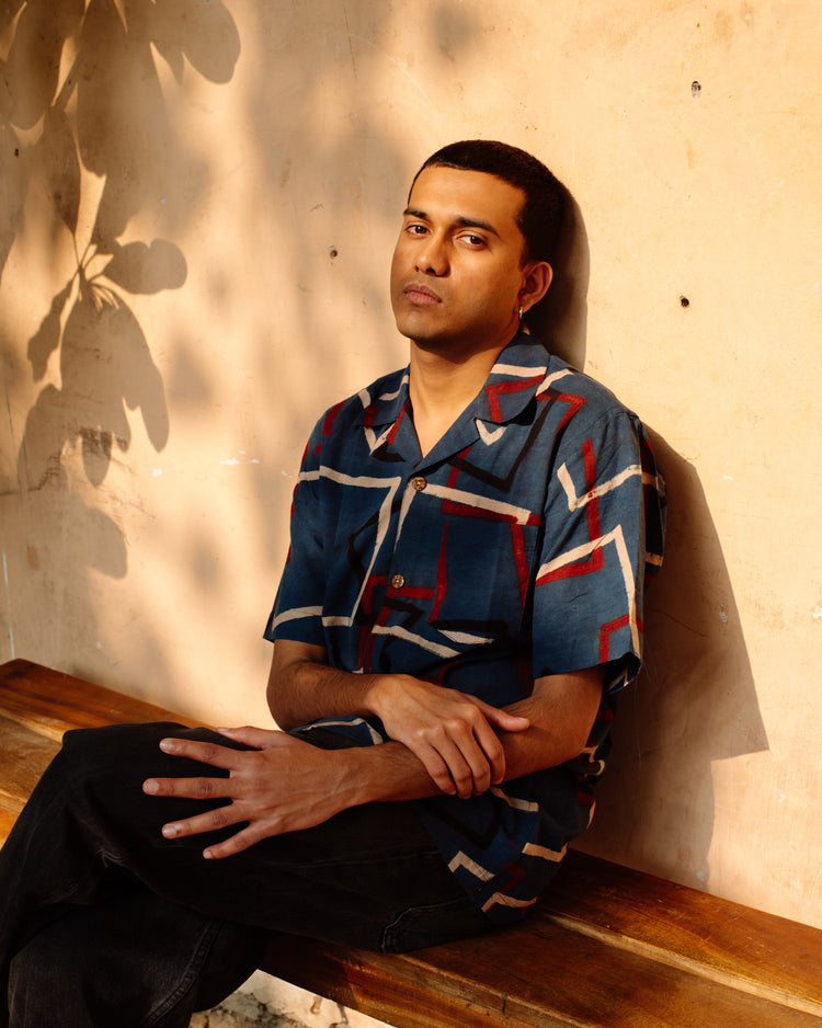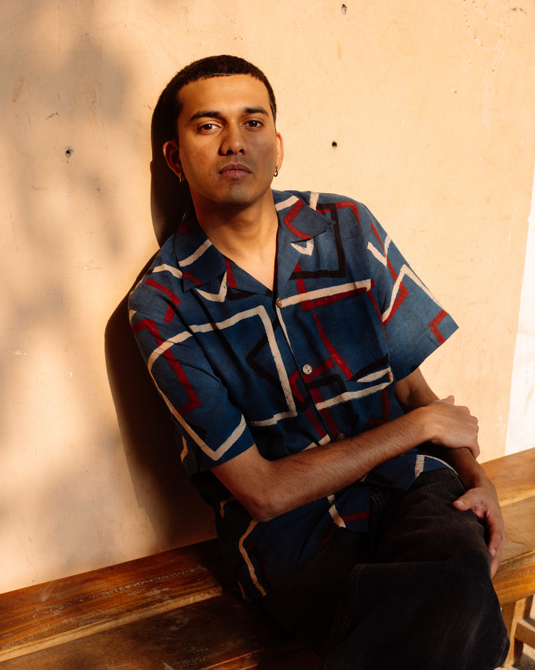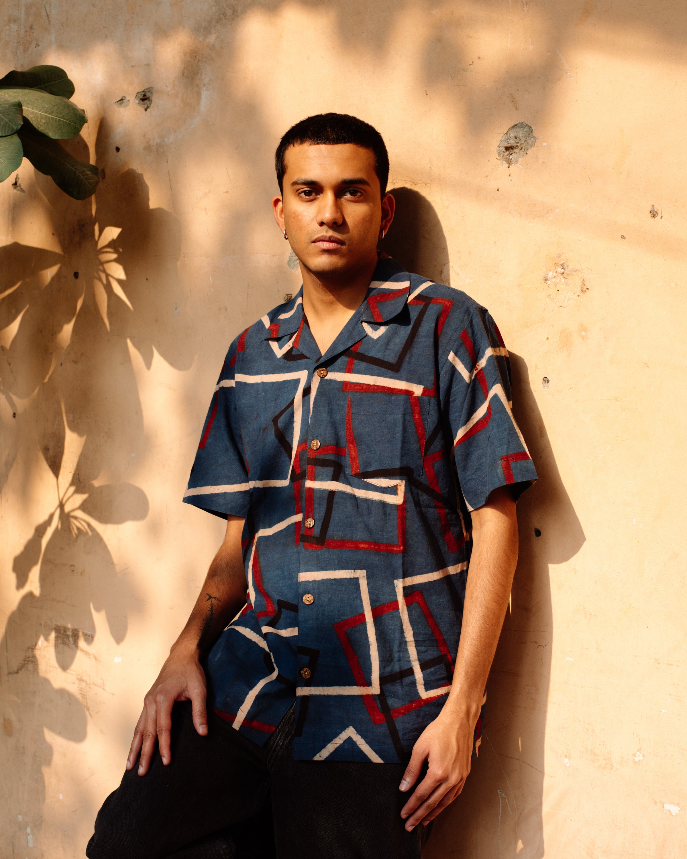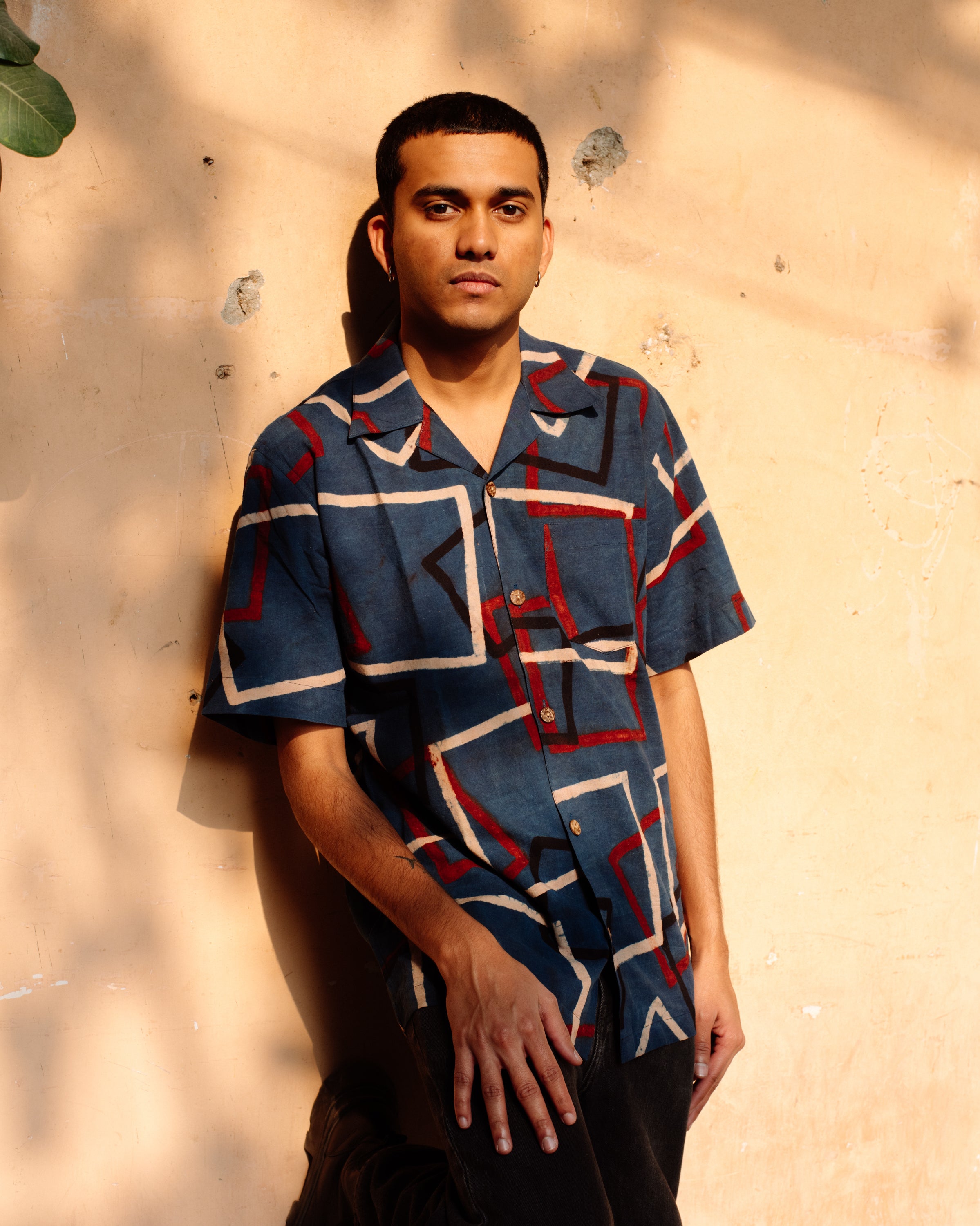 Ajrakh, an indigenous textile from India's western states, features geometric designs and patterns block printed by stamps. The procedure uses vegetables and other natural dyes to represent the history and legacy of India's historic artisan community.