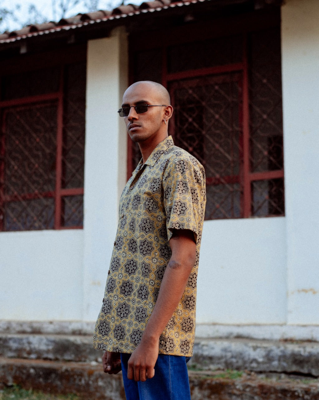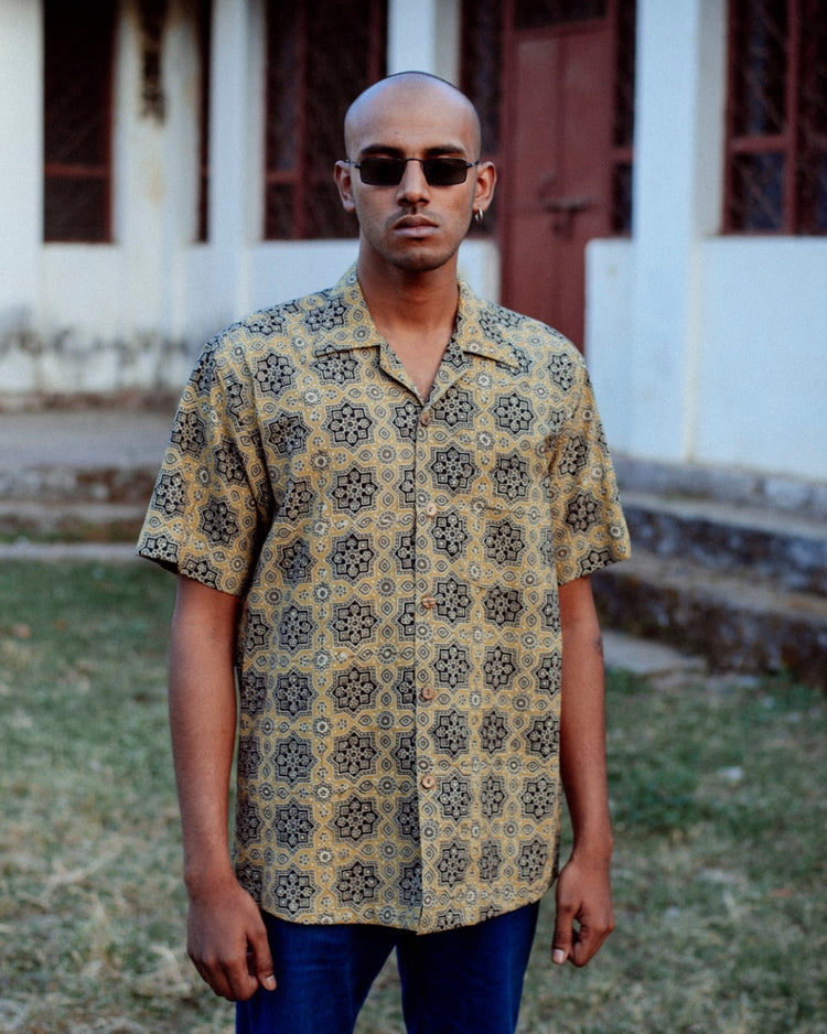 KHAKI TRADITIONAL AJRAKH SHIRT