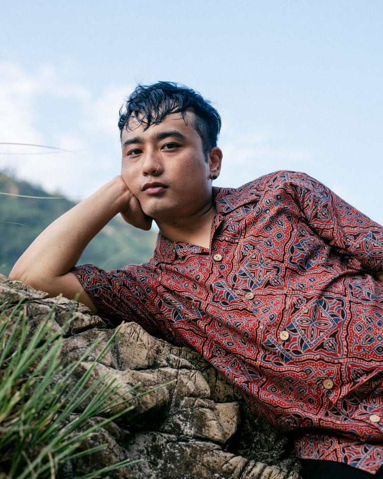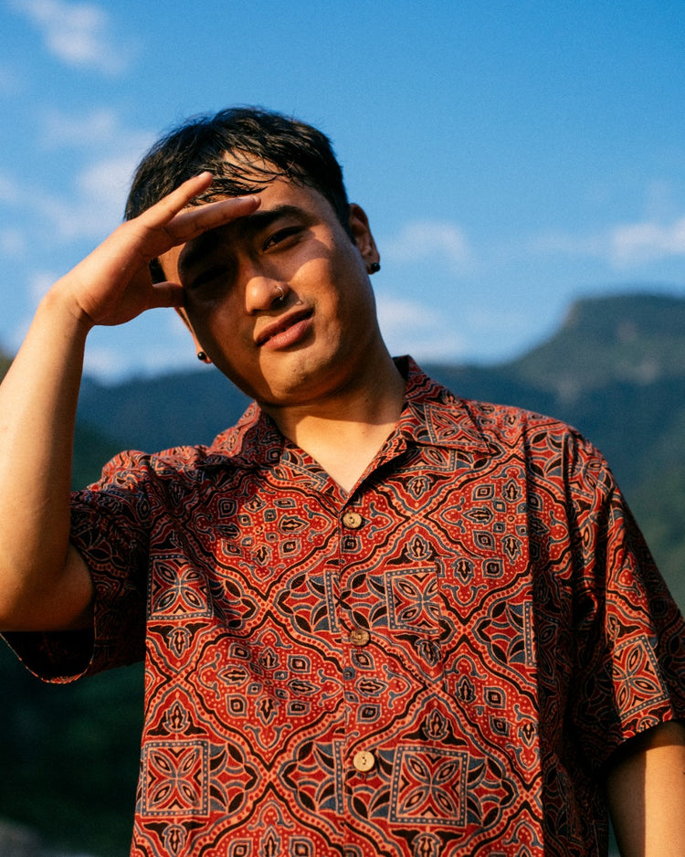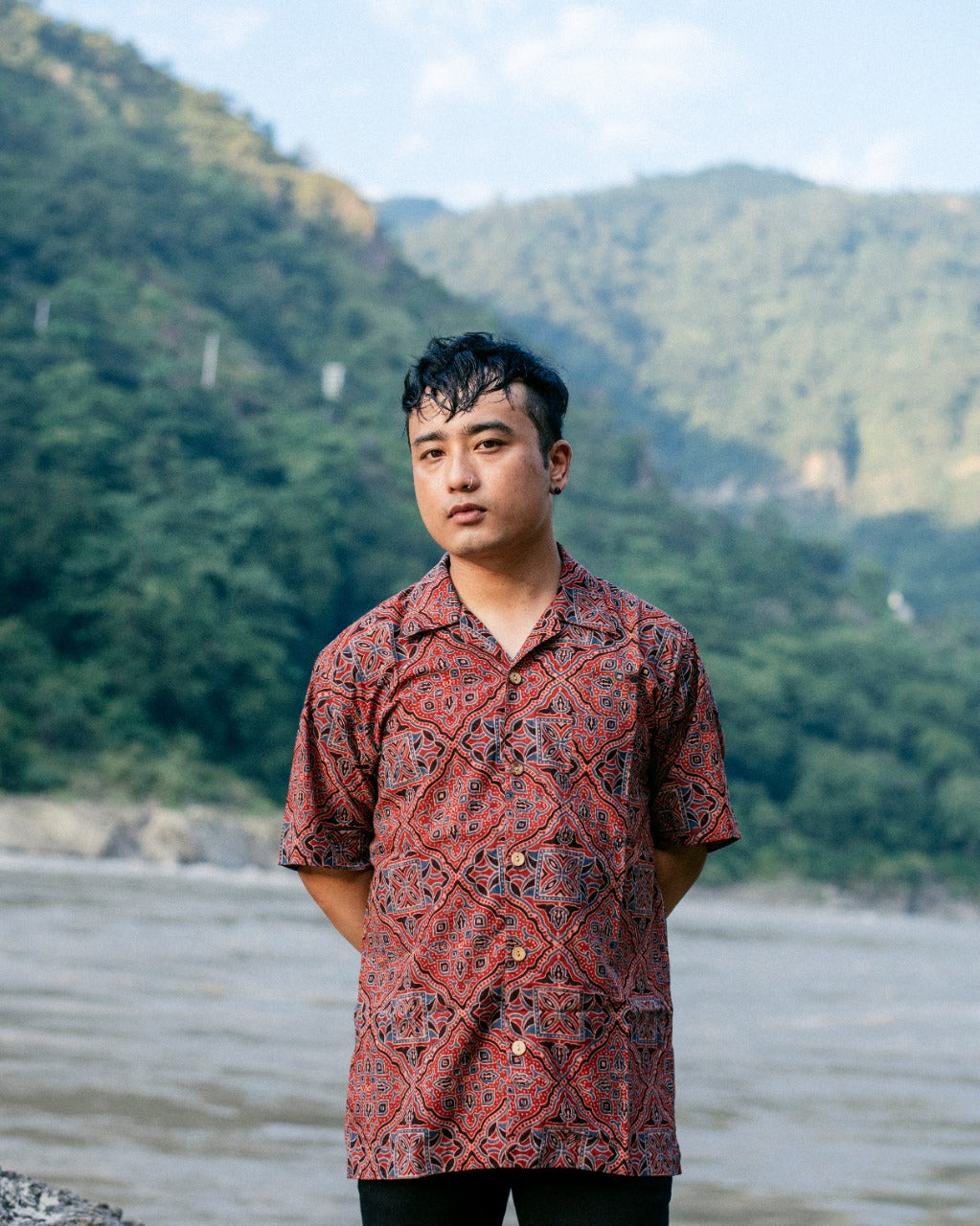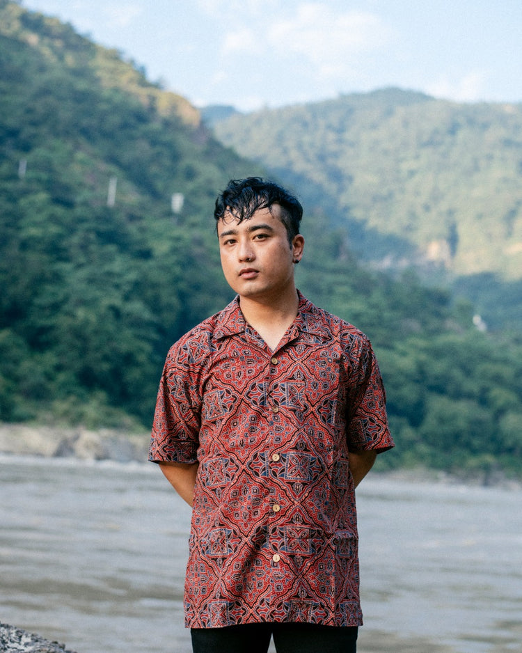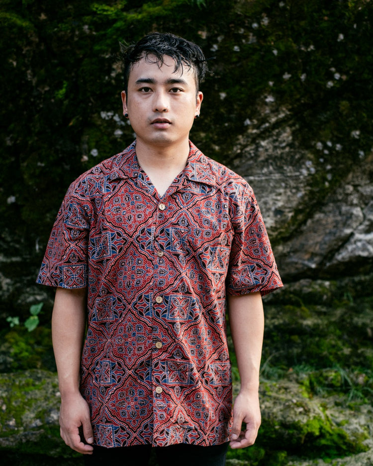 Ajrakh, an indigenous textile from India's western states, features geometric designs and patterns block printed by stamps. The procedure uses vegetables and other natural dyes to represent the history and legacy of India's historic artisan community.
