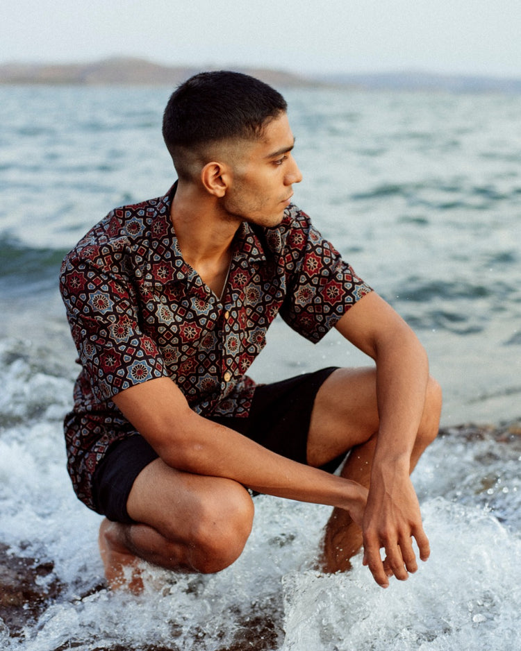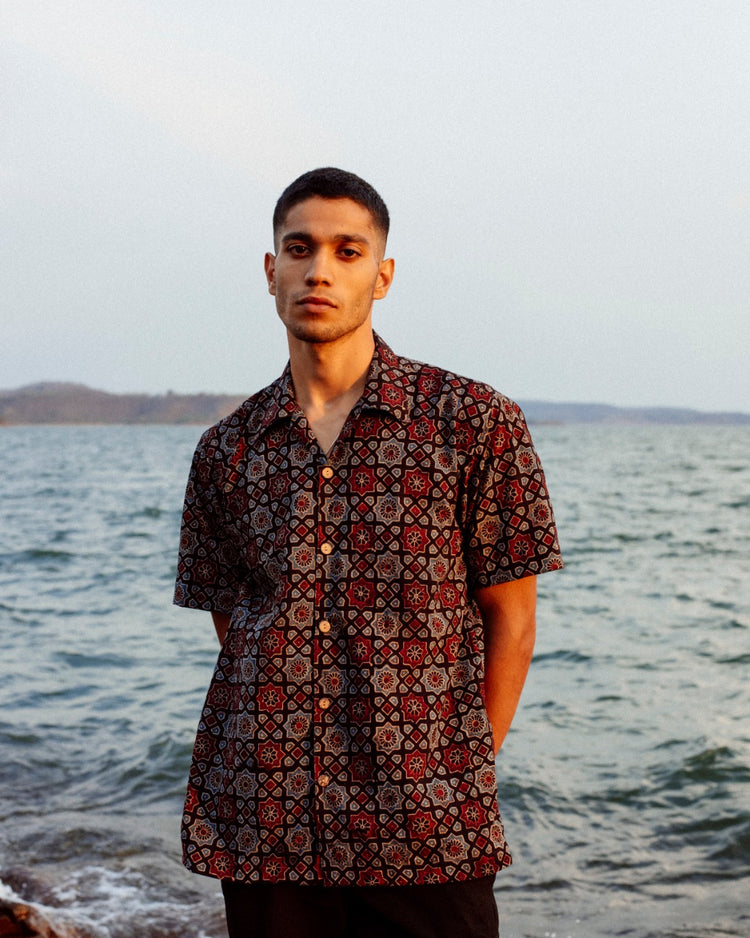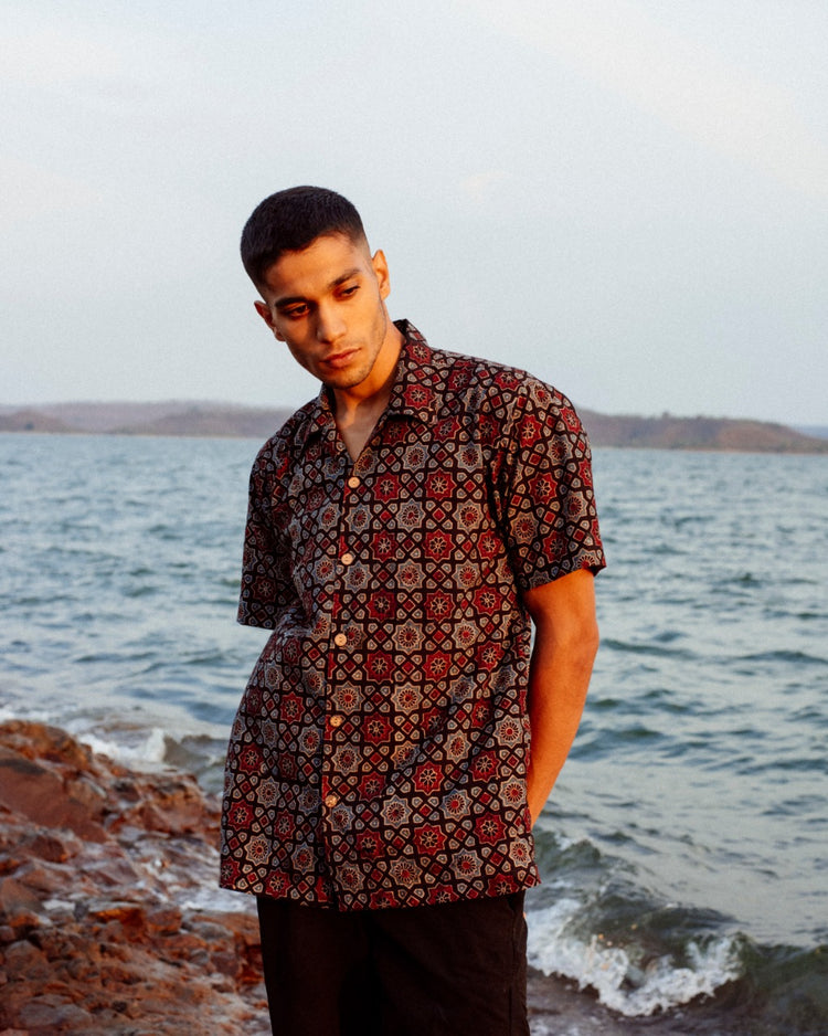 SQUARE MESH AJRAKH SHIRT