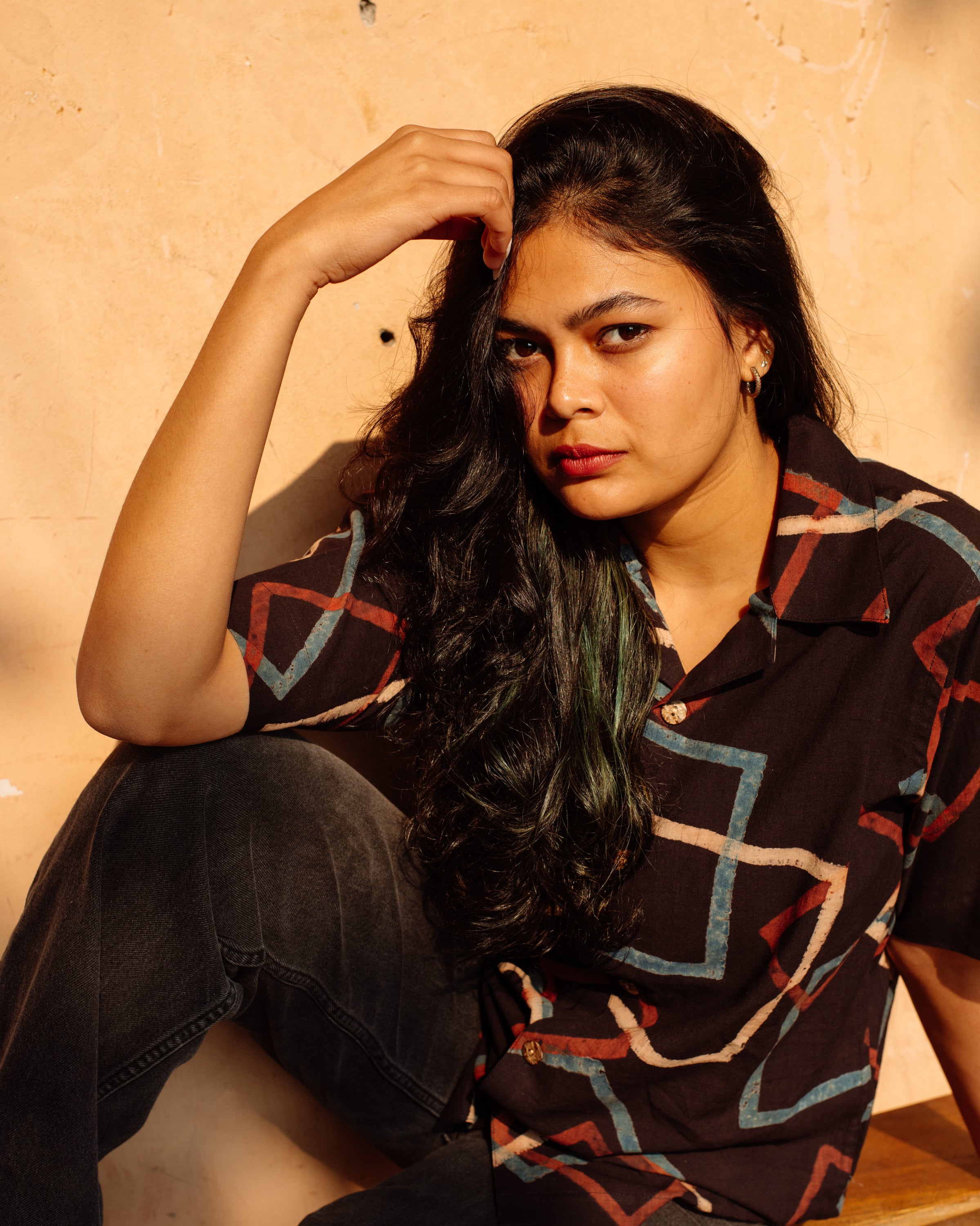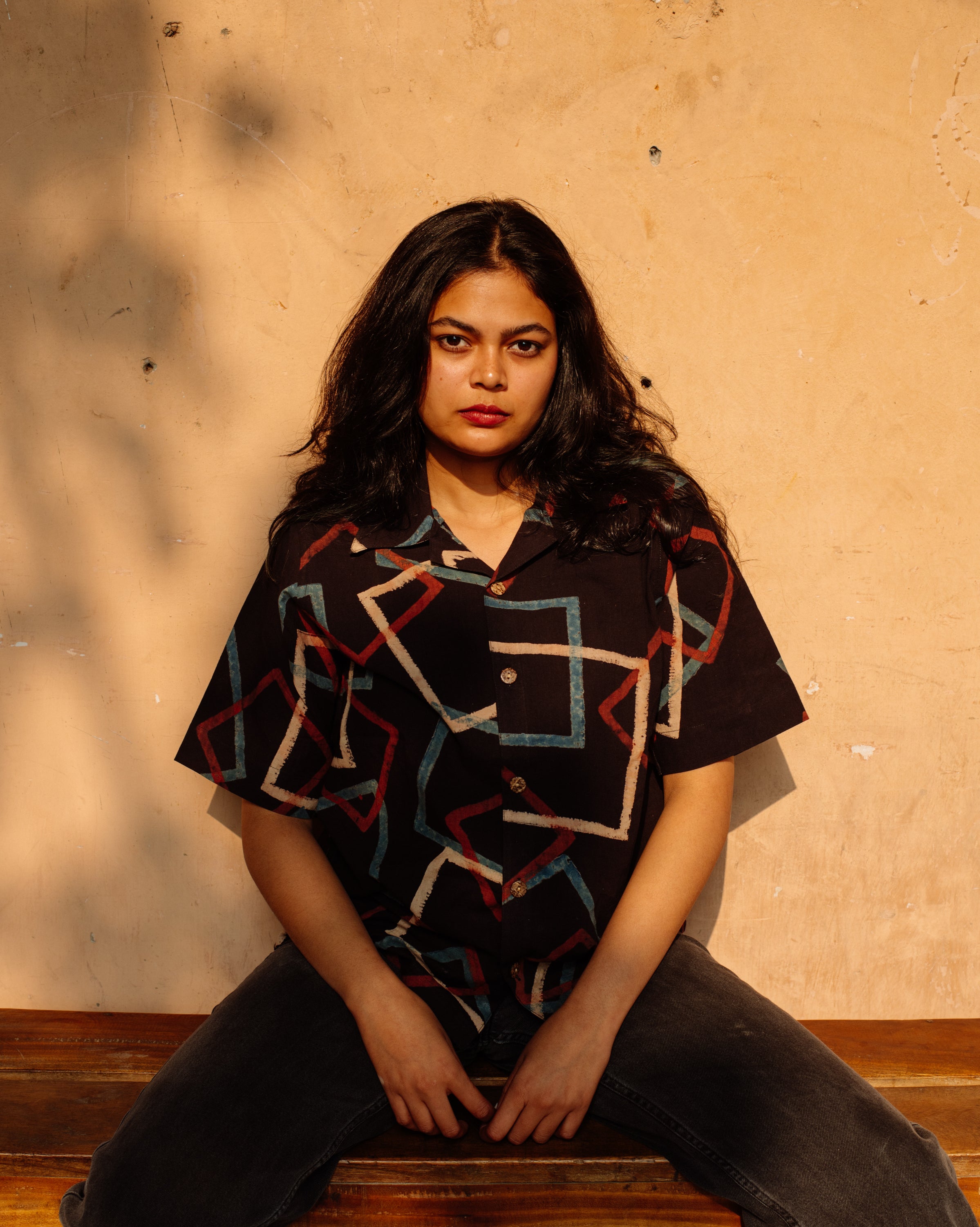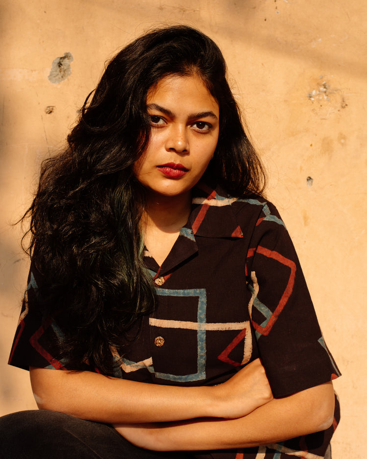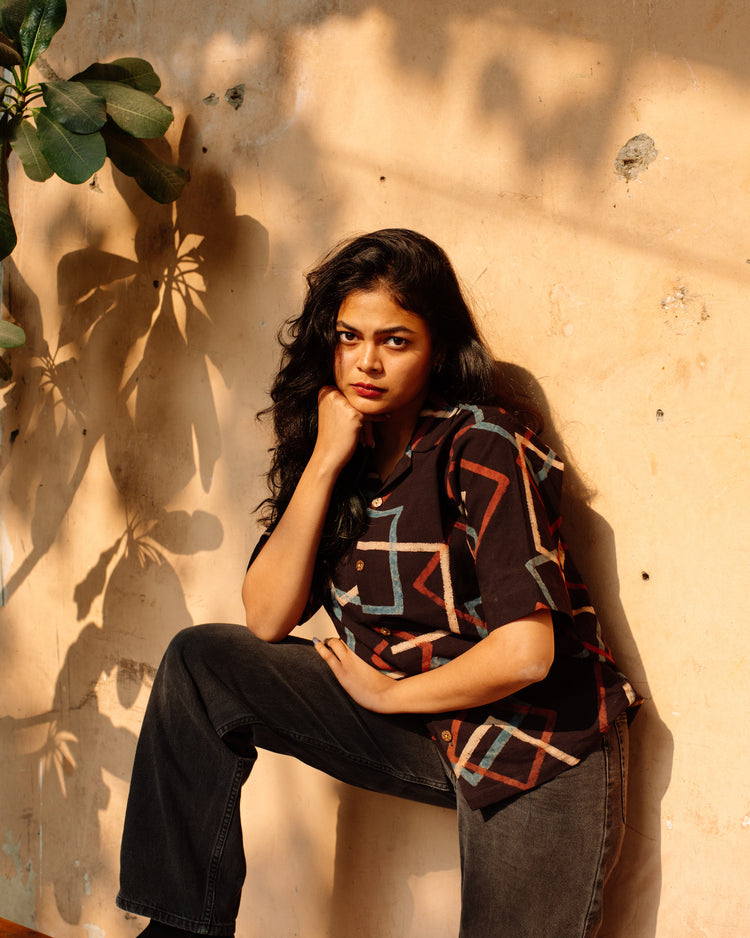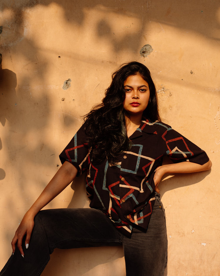 BLACK SQUARE AJRAKH SHIRT