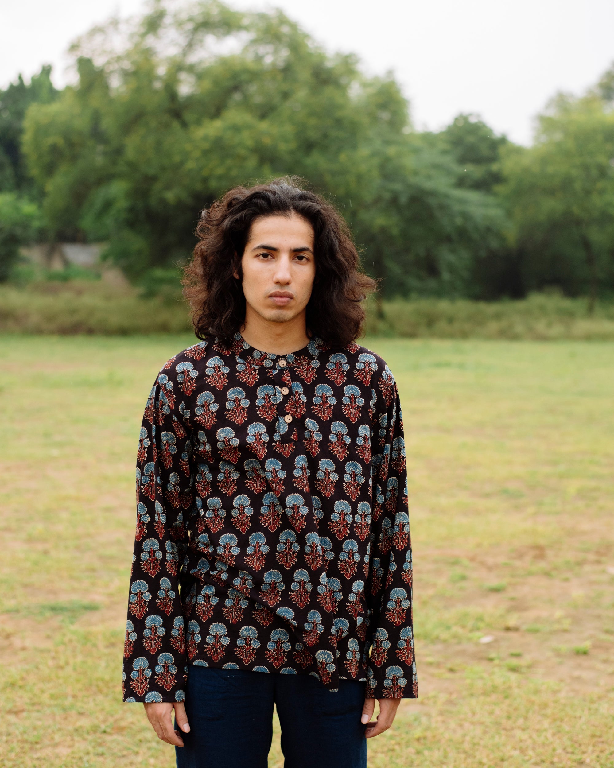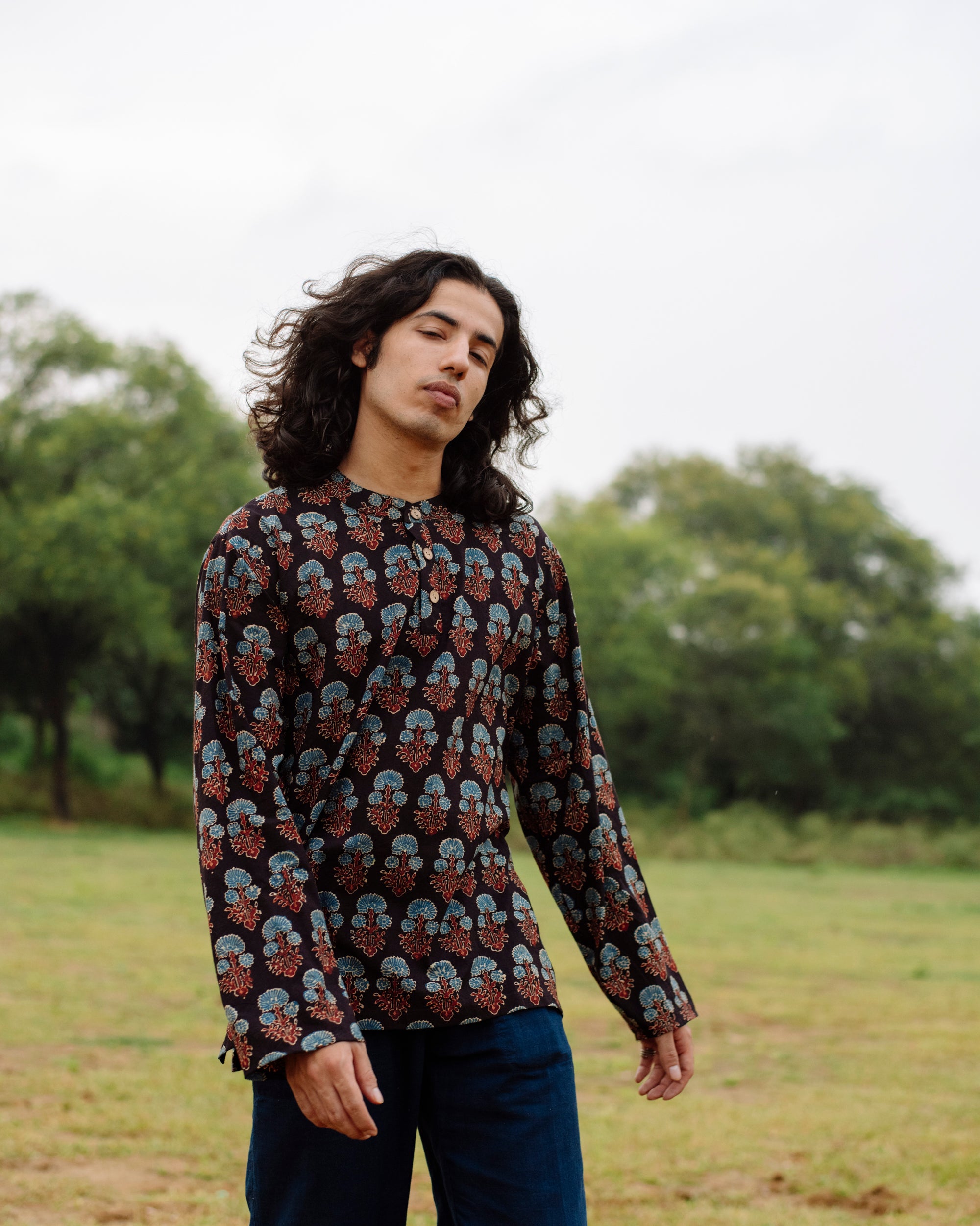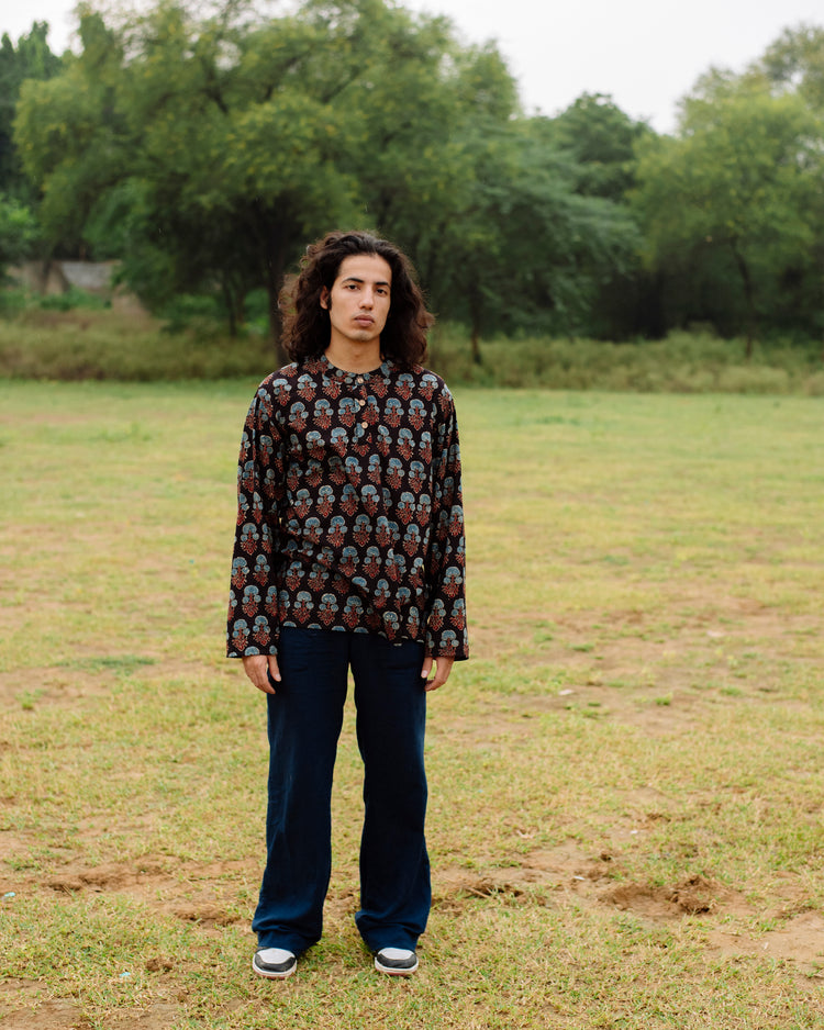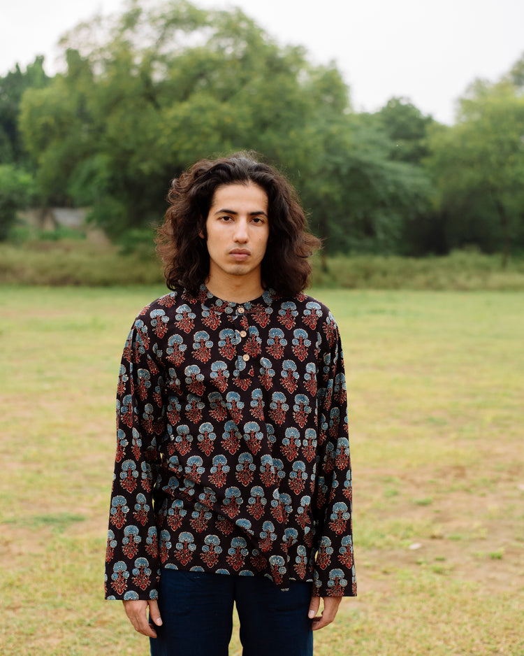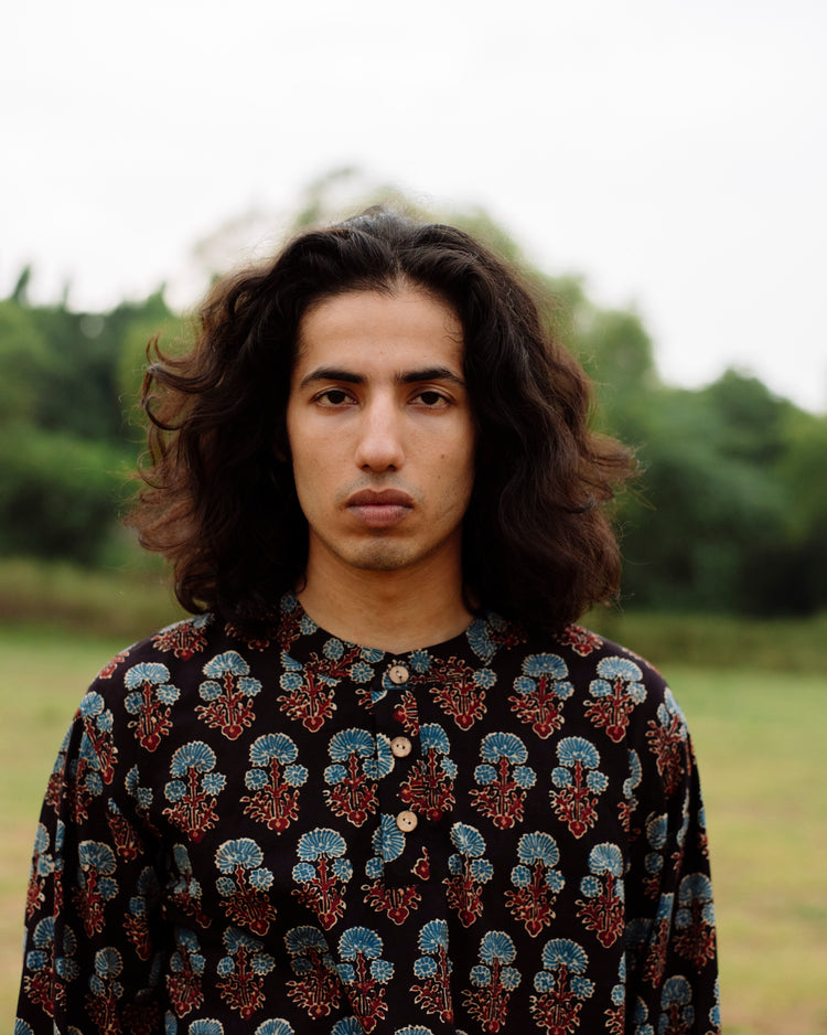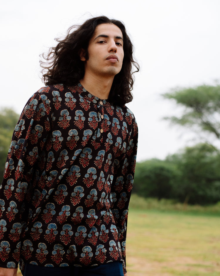BLUE FLOWER AJRAKH SHORT KURTA