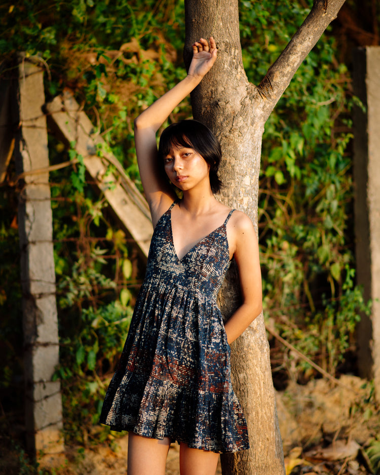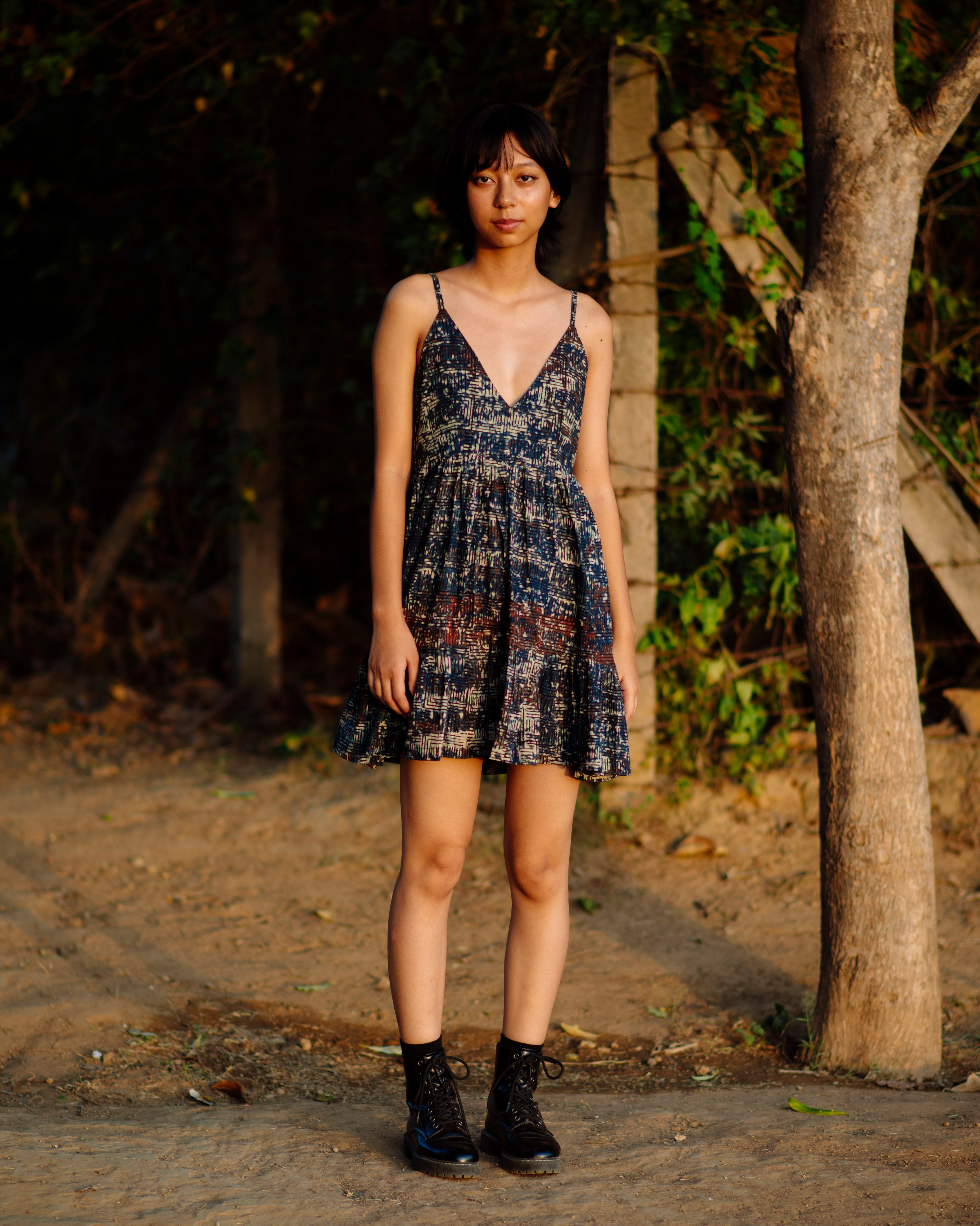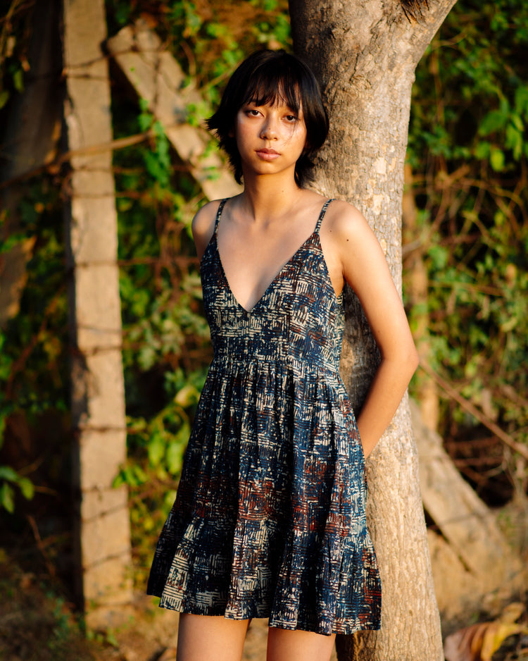 Ajrakh, an indigenous textile from India's western states, features geometric designs and patterns block printed by stamps. The procedure uses vegetables and other natural dyes to represent the history and legacy of India's historic artisan community.