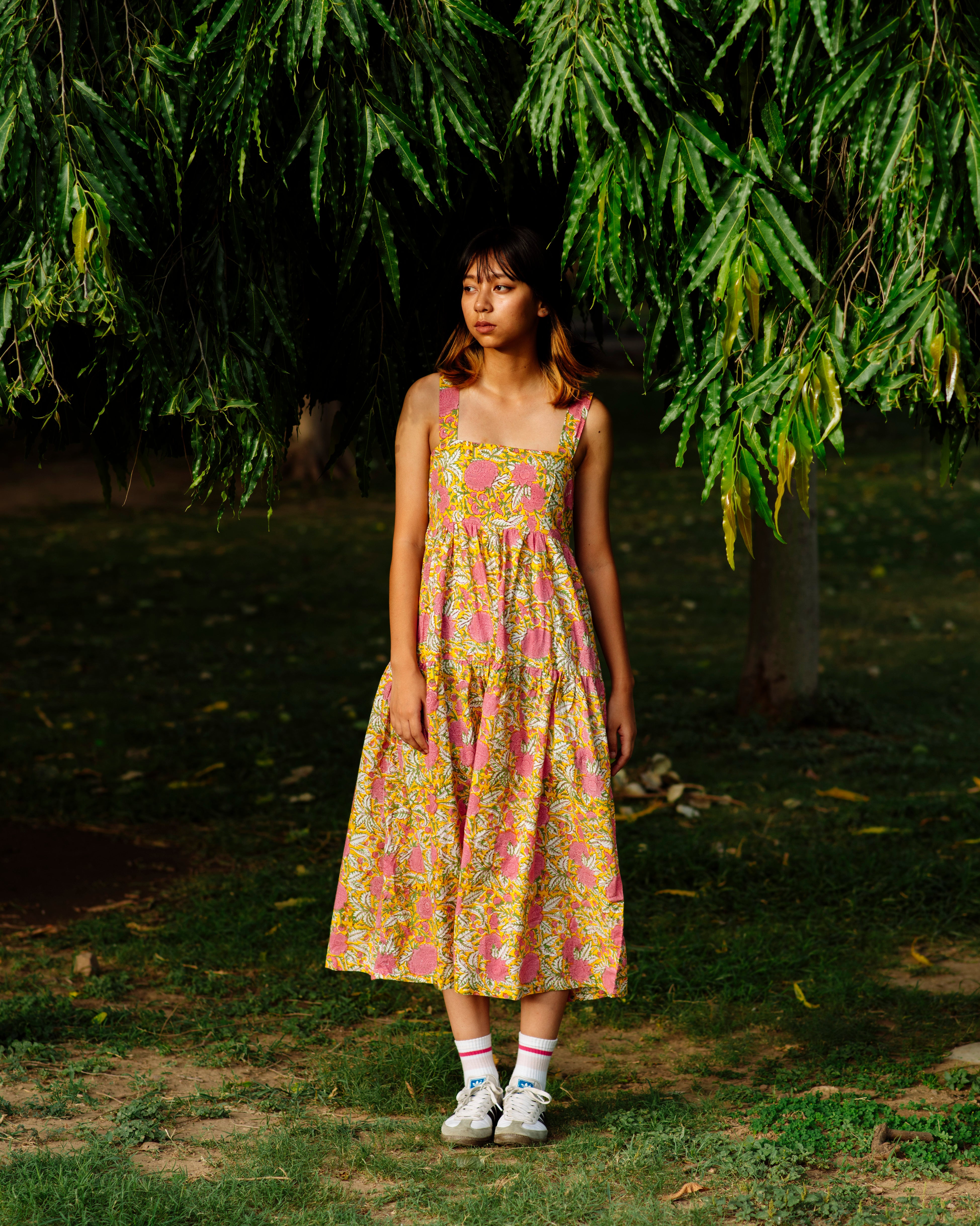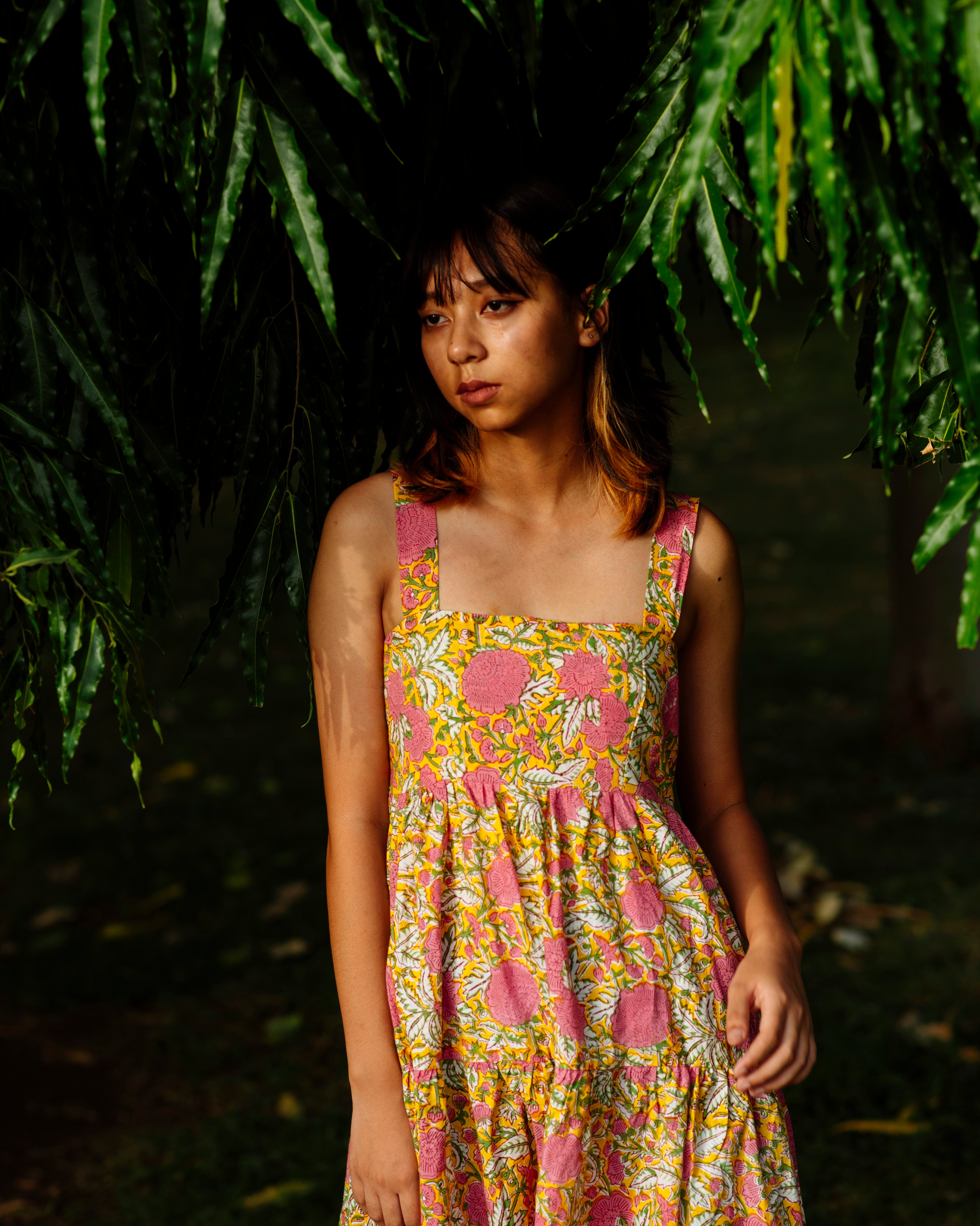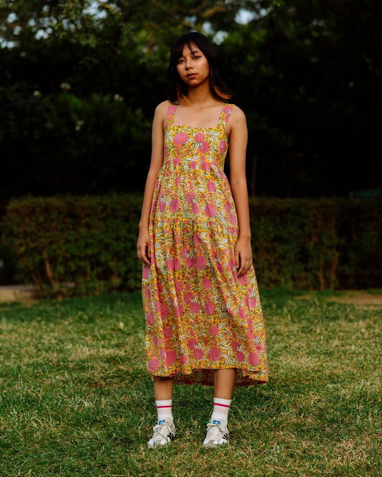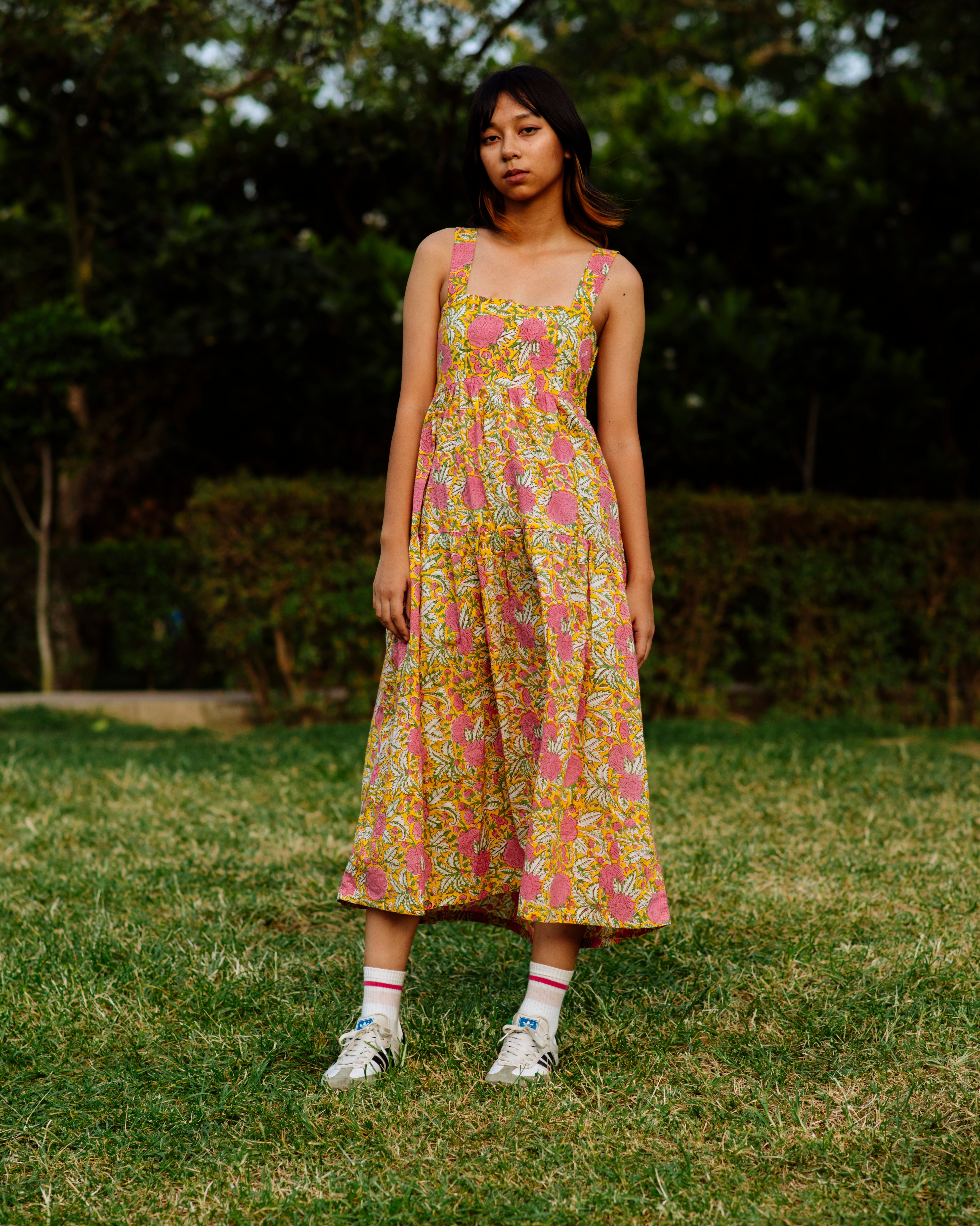 Sanganeri/Rapid is a Rajasthani block printing method that includes hand printing the fabric on the table with intricately designed blocks. It entails carefully patterning the cloth to ensure symmetry. The elaborate motifs on the block include beautiful floral designs of buds, flowers, leaves, mangoes, and, on occasion, jhumakas.