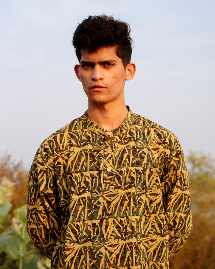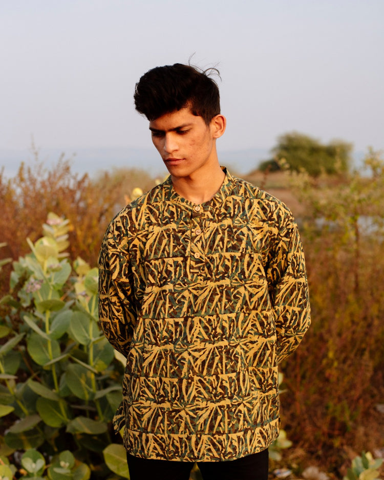 YELLOW ABSTRACT AJRAKH SHORT KURTA
