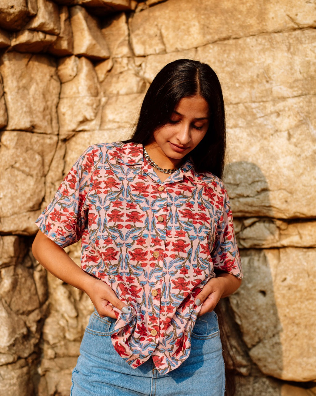 RED LEAF BAGRU SHIRT