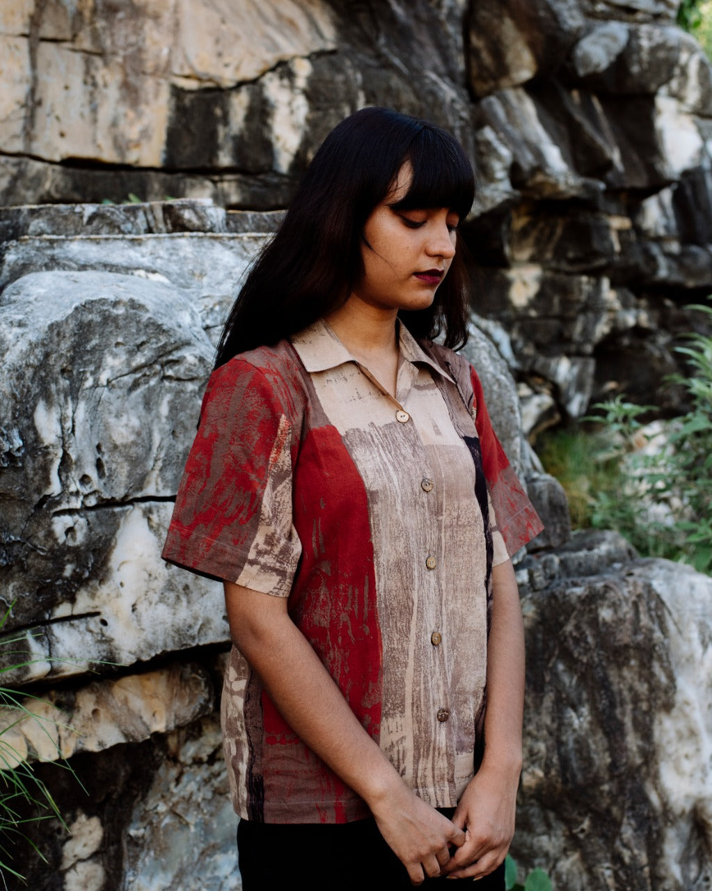 BEIGE HANDPAINTED AJRAKH SHIRT