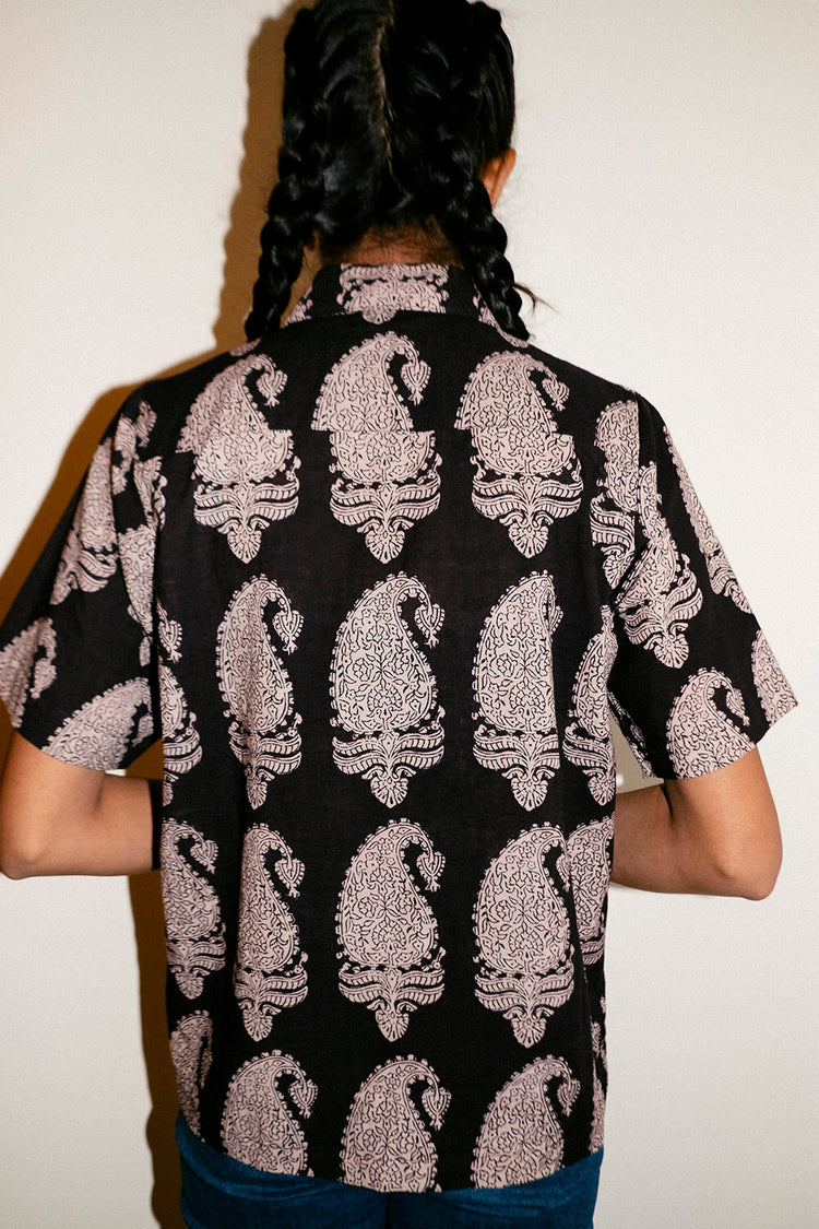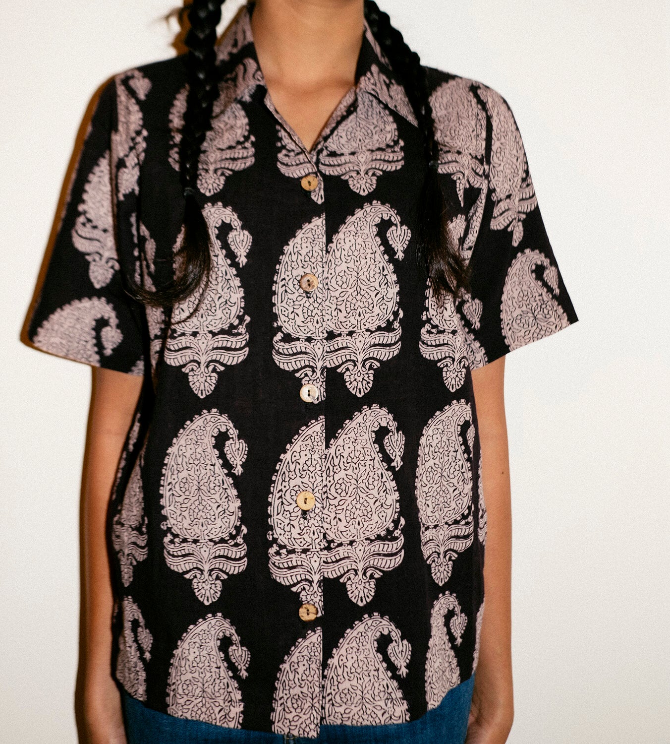 BLACK AND WHITE MUGHAL BAGH SHIRT