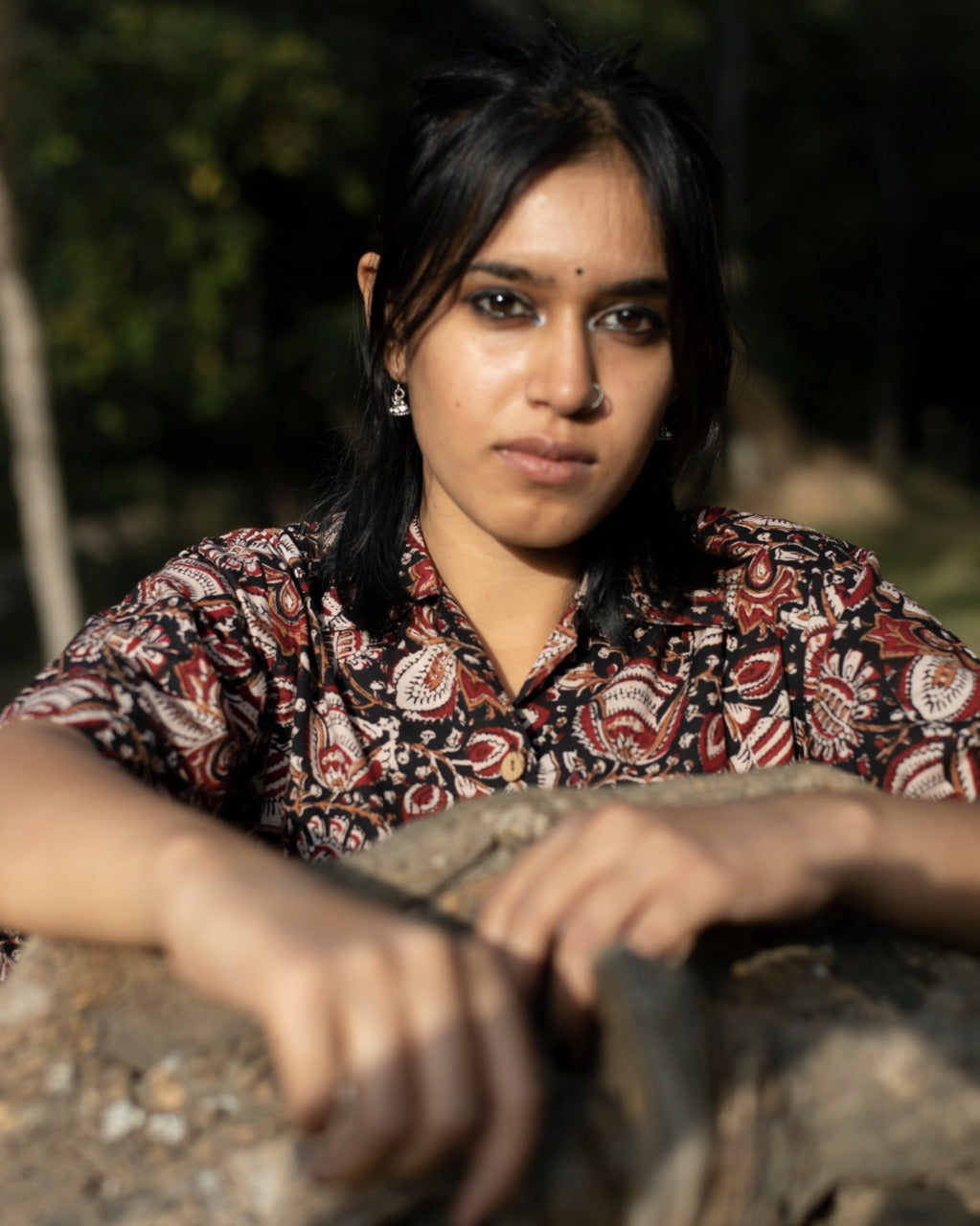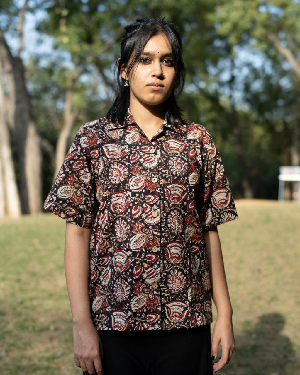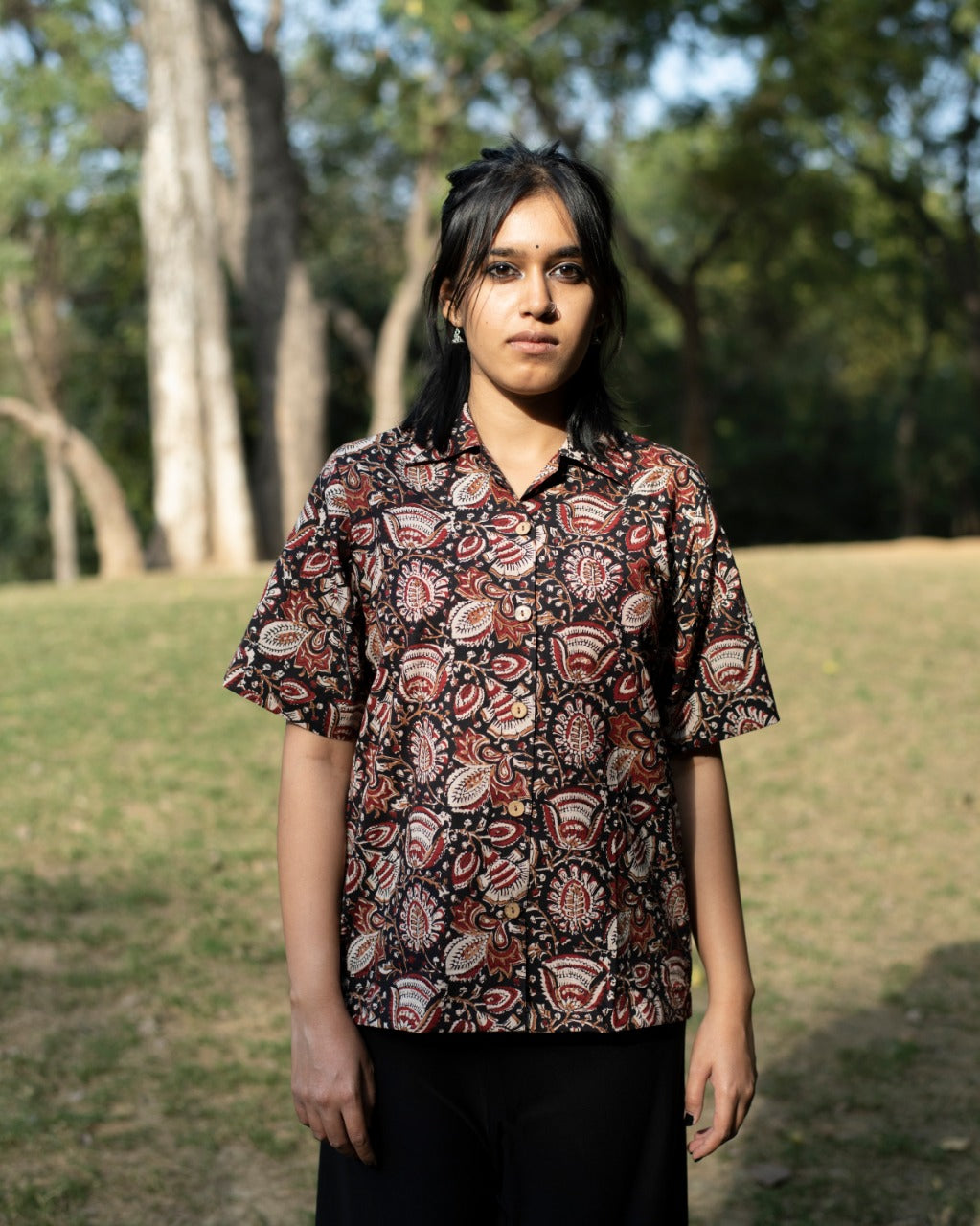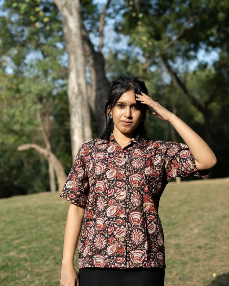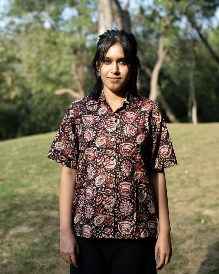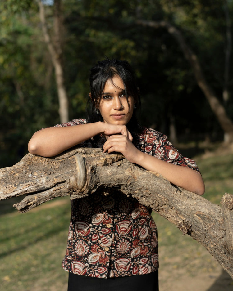 BLACK FLORAL KALAMKARI SHIRT
