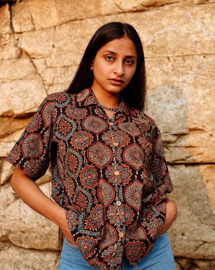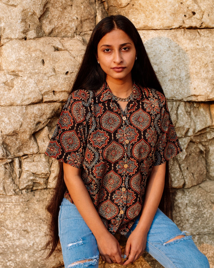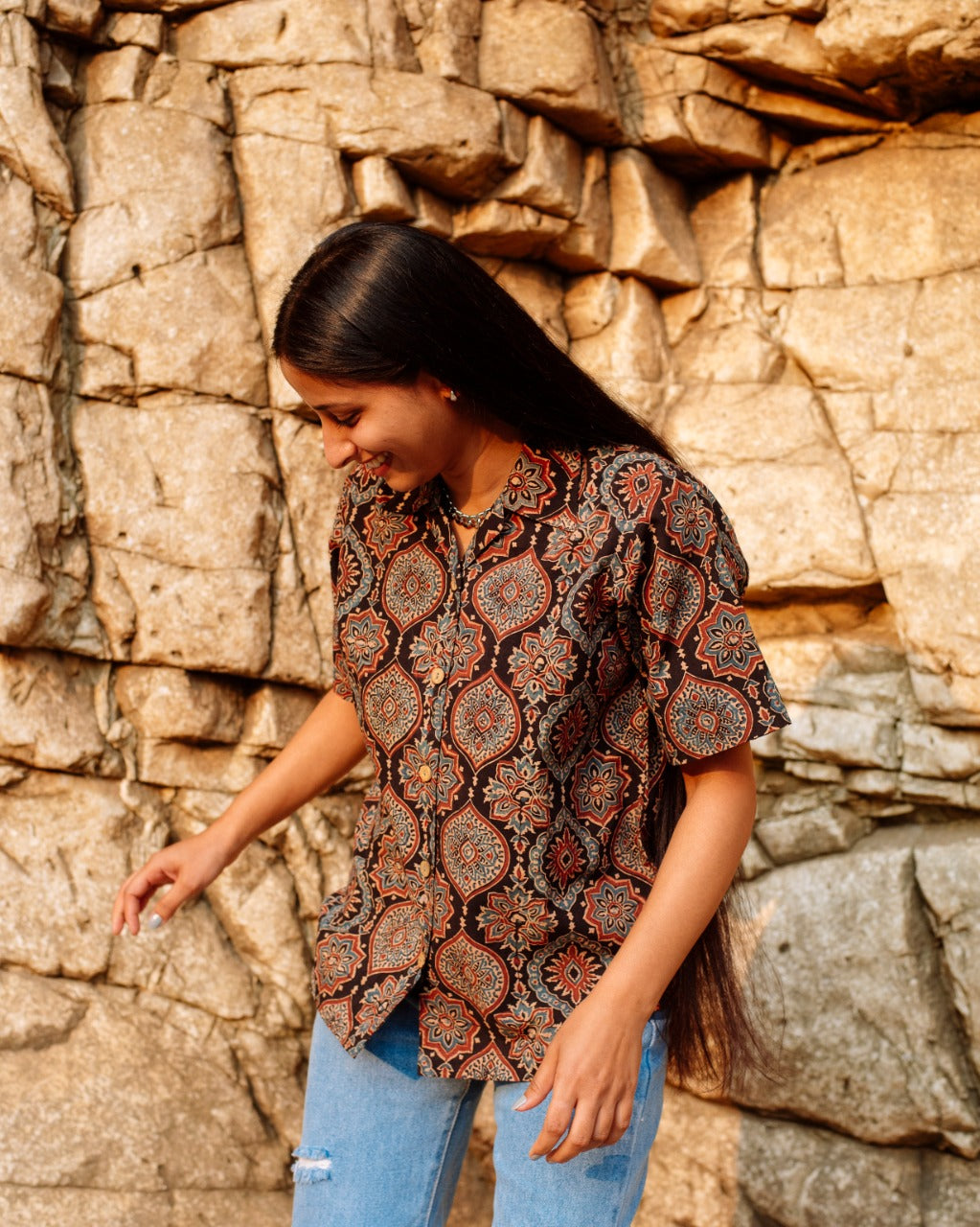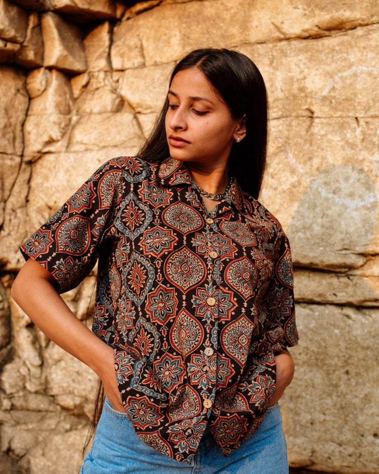 BLACK OGEE KALEEN AJRAKH SHIRT