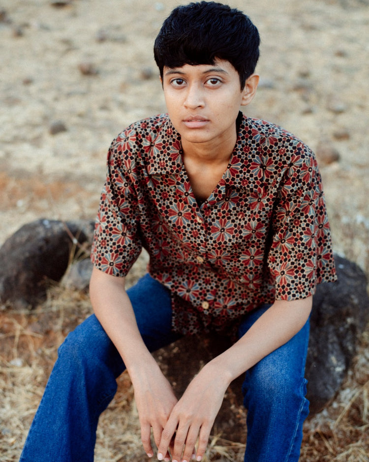 FLORAL MAROON AJRAKH SHIRT