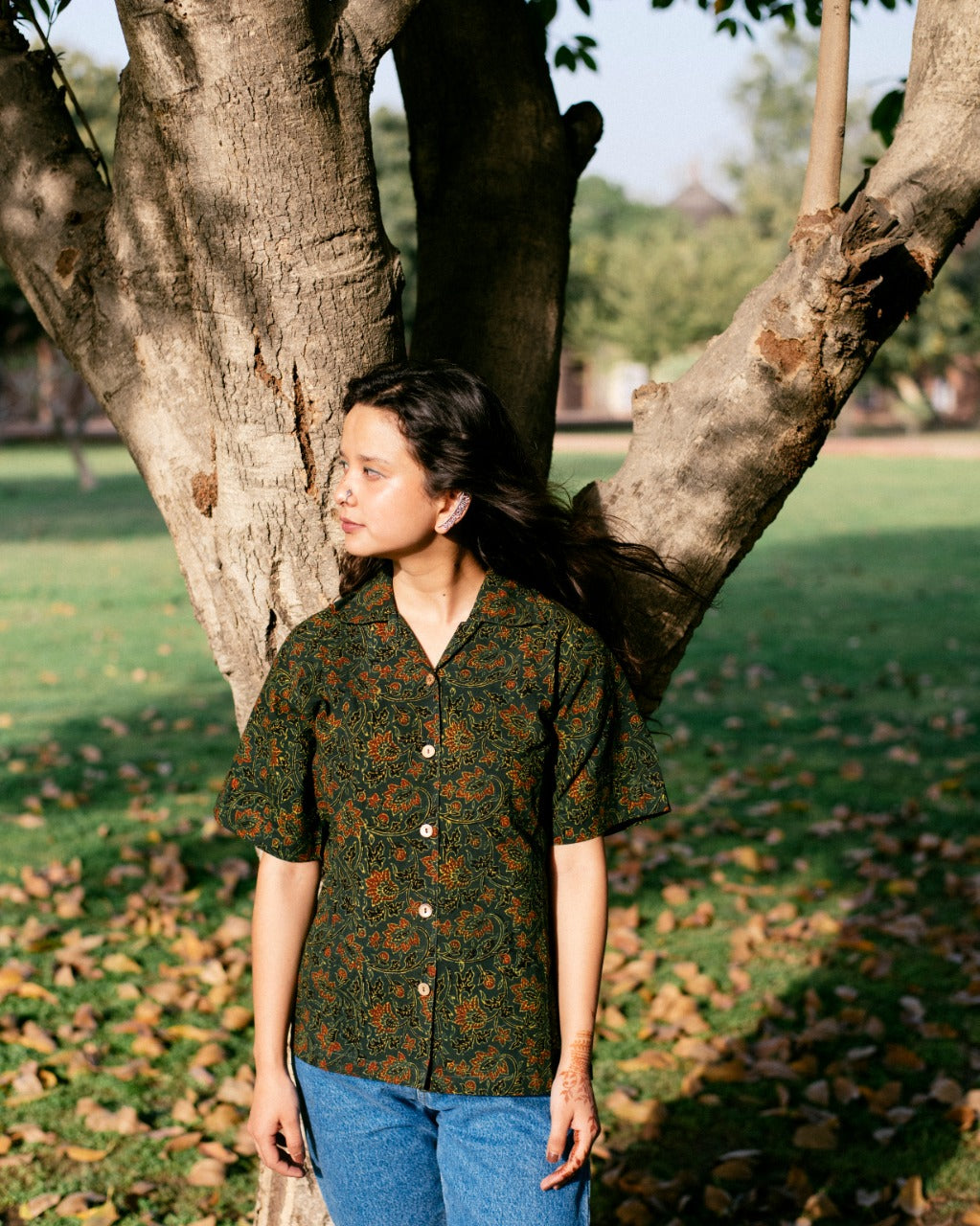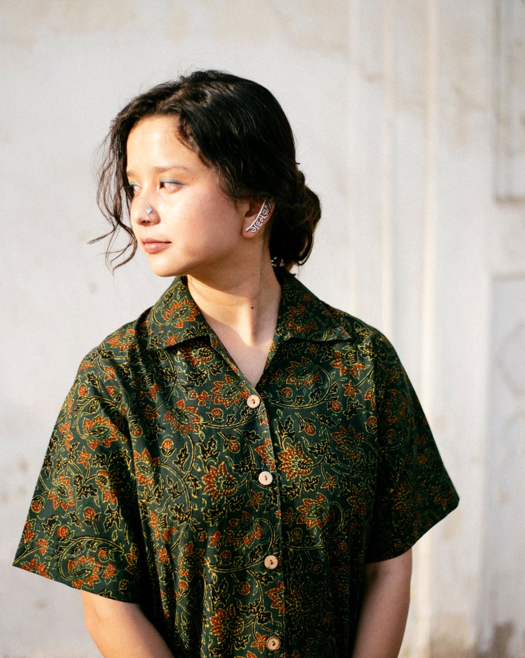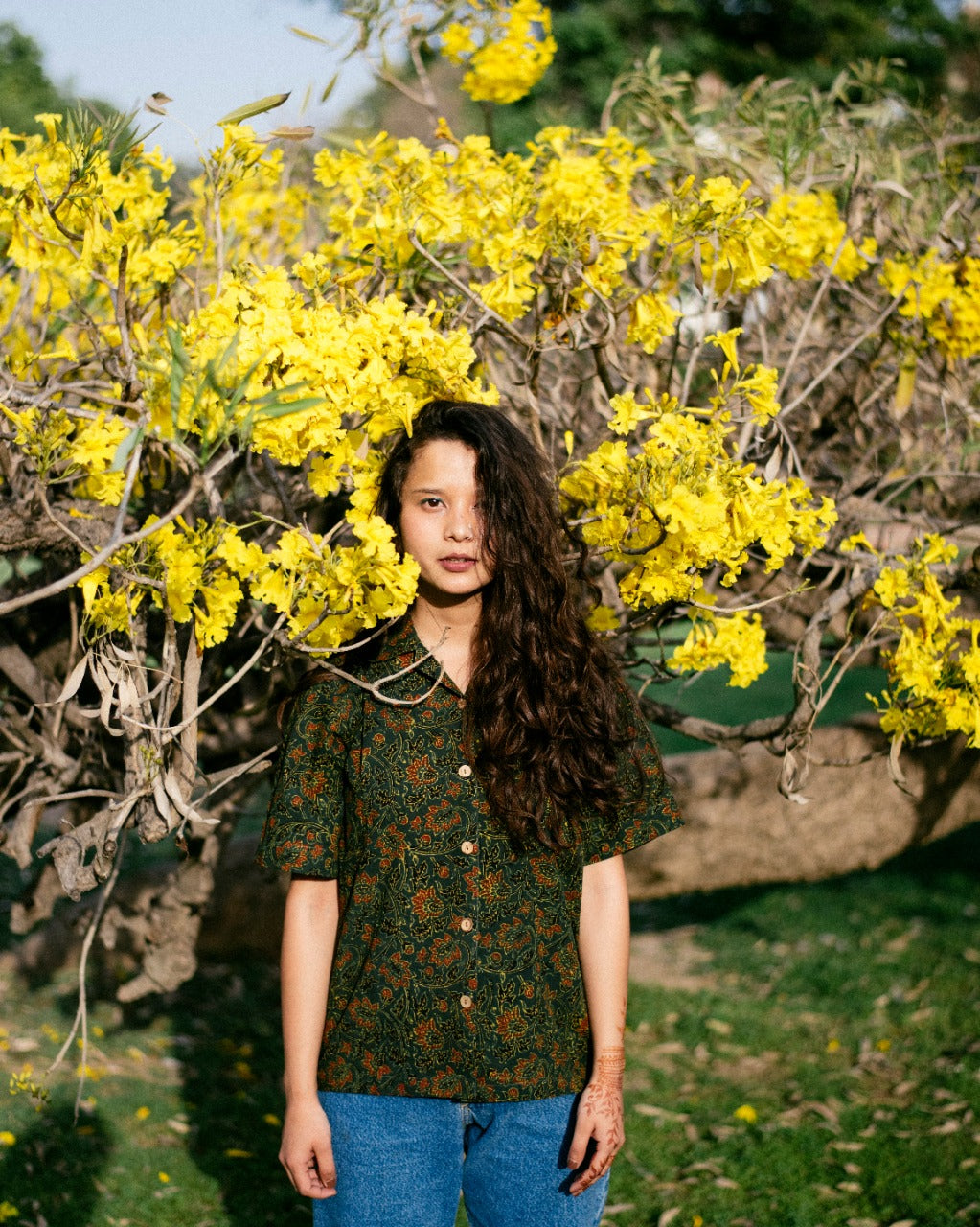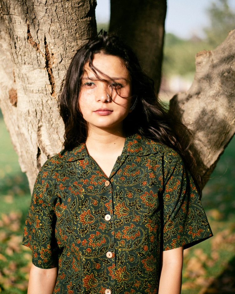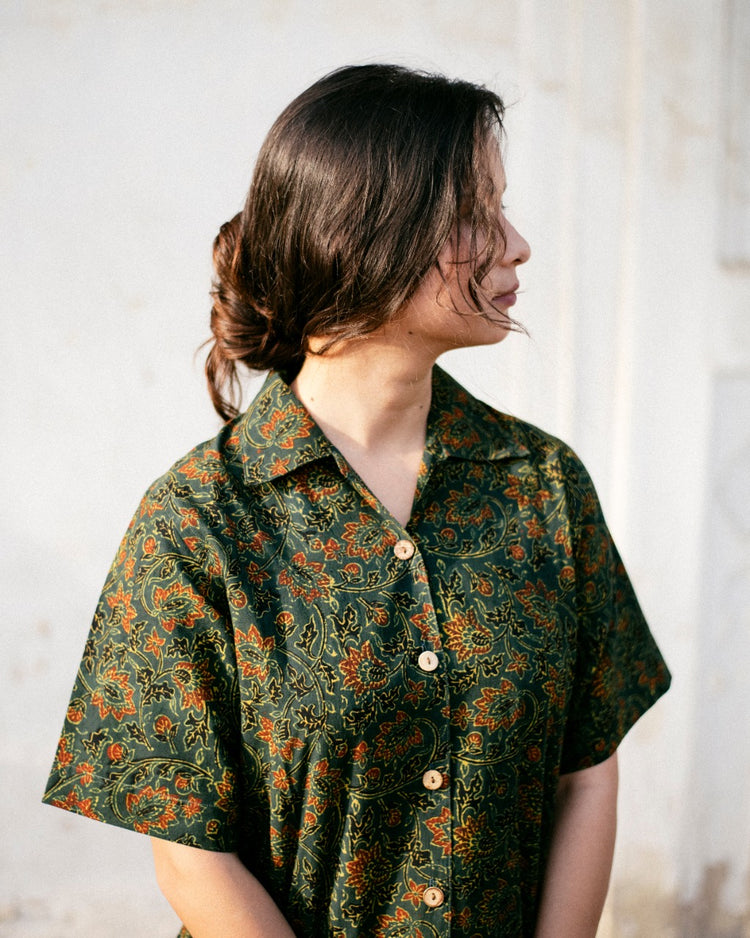 GREEN FLORAL AJRAKH SHIRT