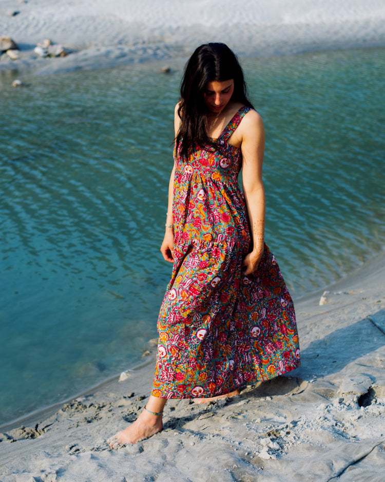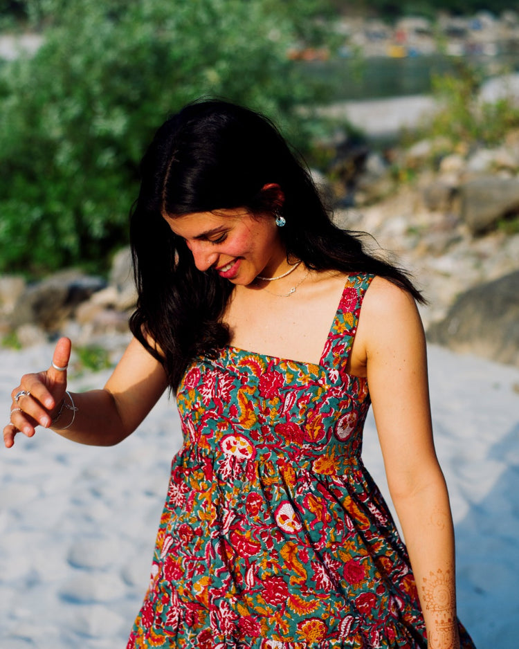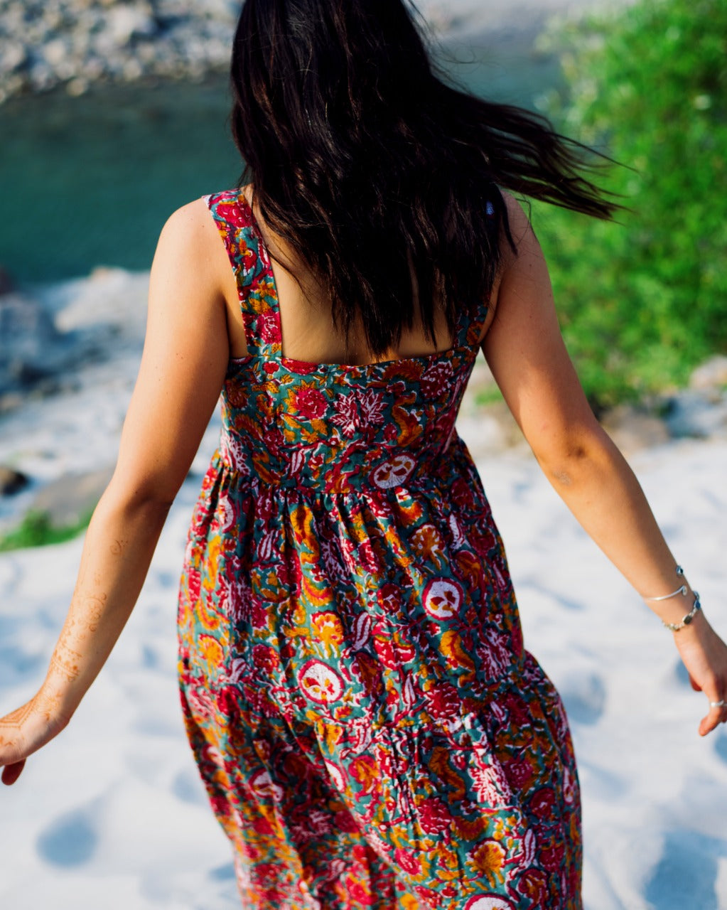 Sanganeri/Rapid is a Rajasthani block printing method that includes hand printing the fabric on the table with intricately designed blocks. It entails carefully patterning the cloth to ensure symmetry. The elaborate motifs on the block include beautiful floral designs of buds, flowers, leaves, mangoes, and, on occasion, jhumakas.
