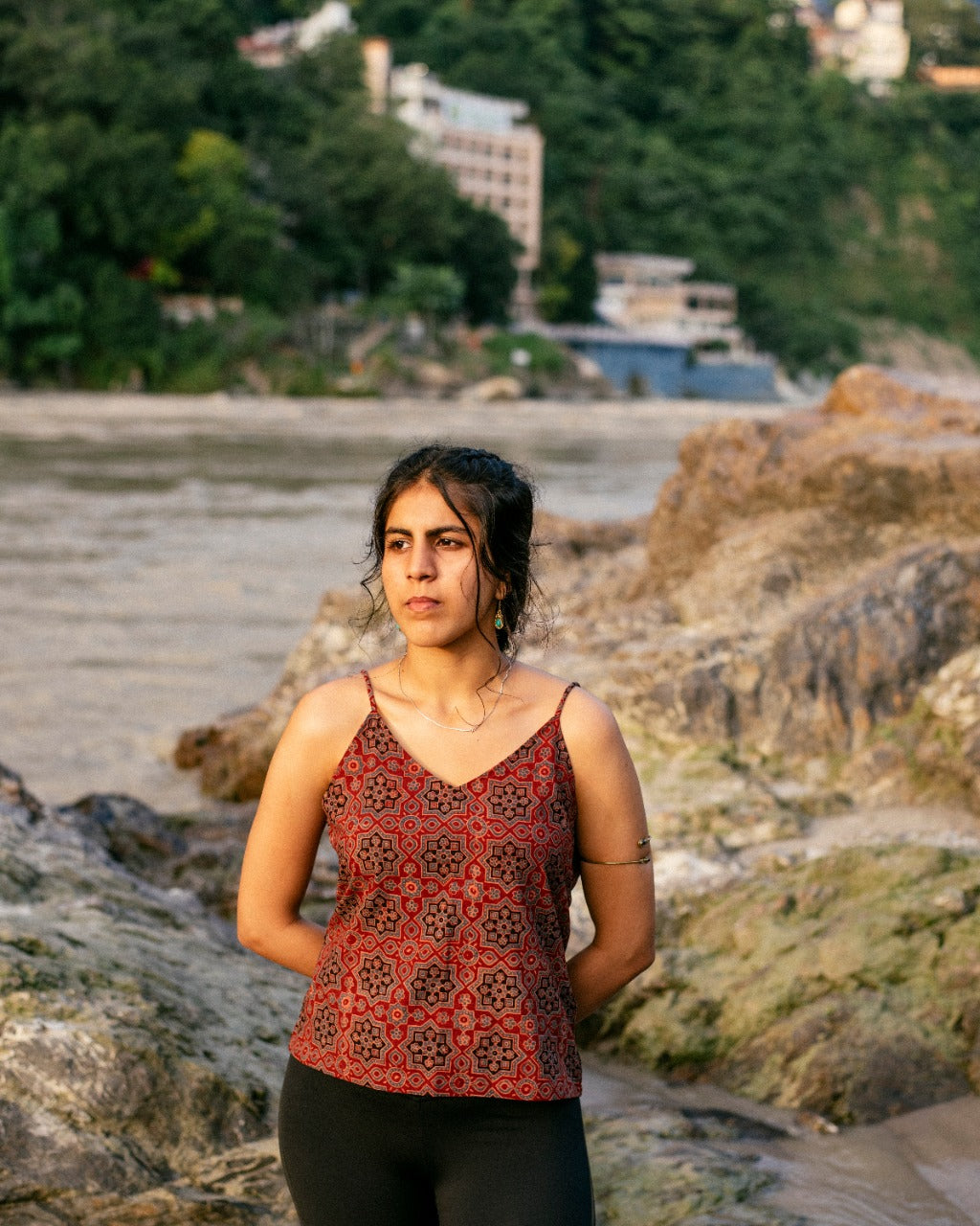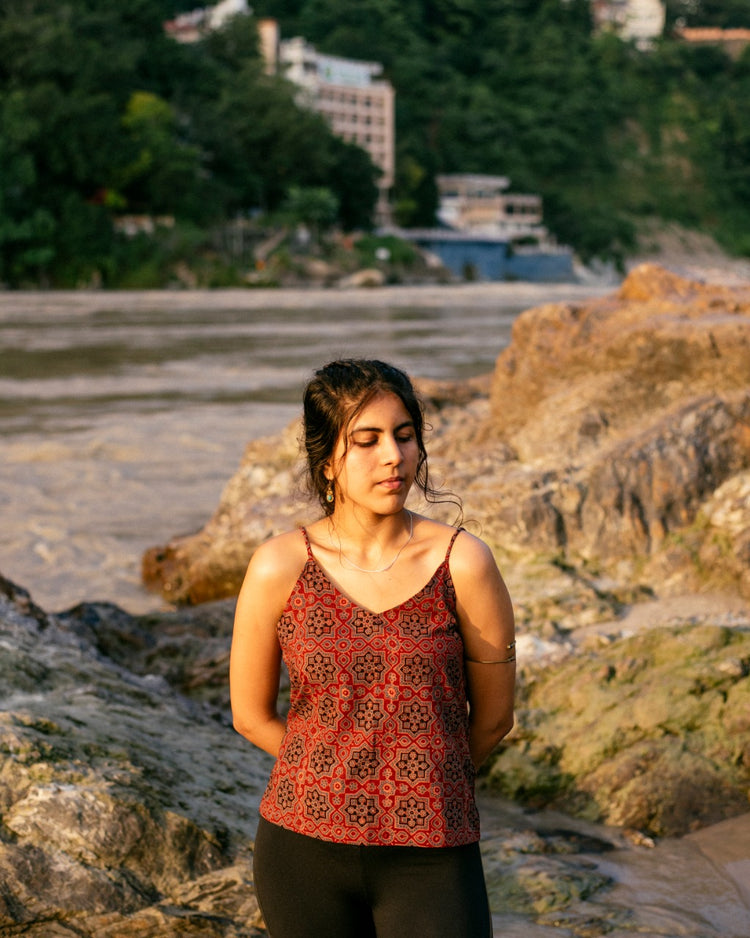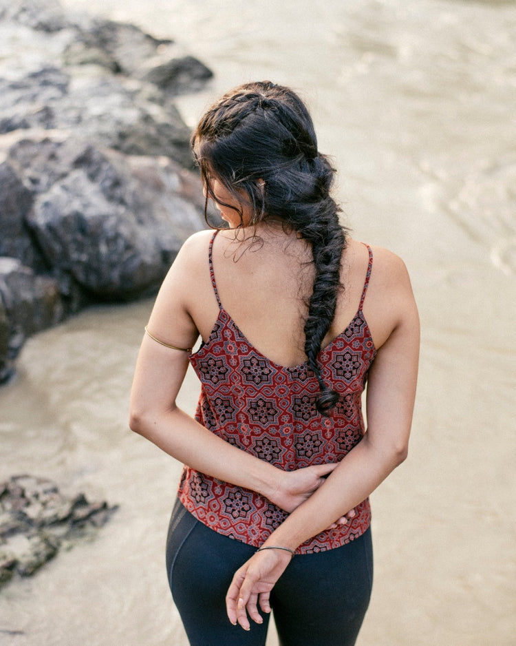 MAROON SITARA AJRAKH SPAGHETTI TOP