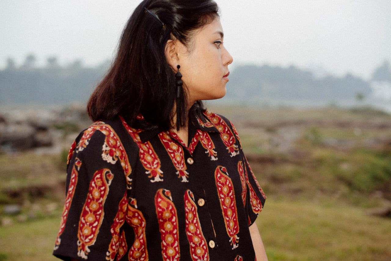 ORANGE LEAF MUGHAL BAGRU SHIRT