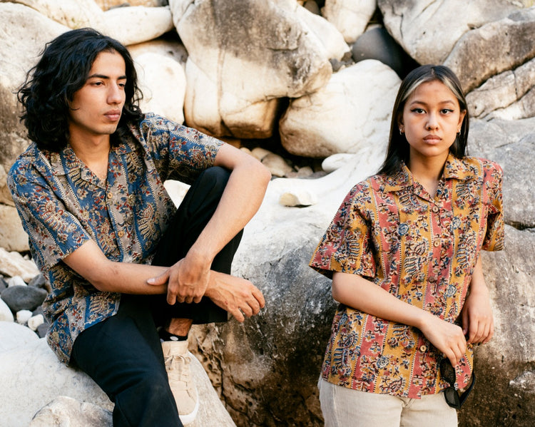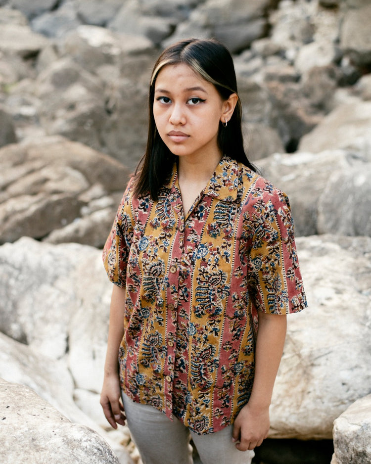 PEACH MUSTARD STRIPED KALAMKARI SHIRT