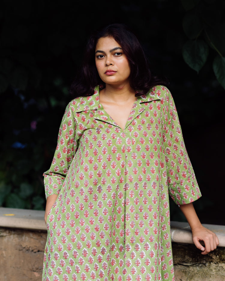 PISTACHIO FLORAL RAPID COLLARED DRESS