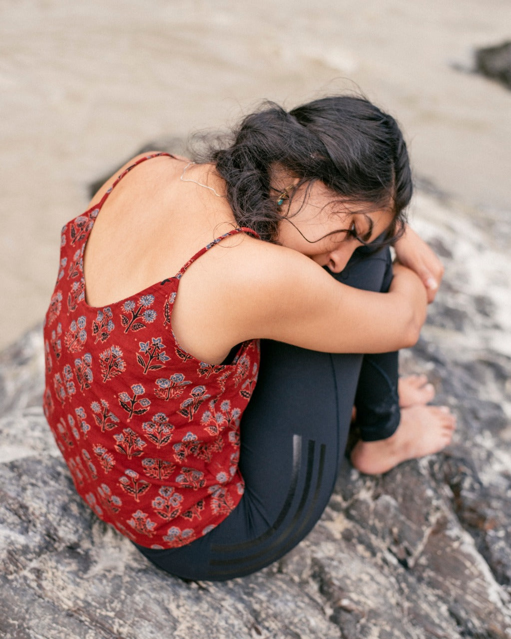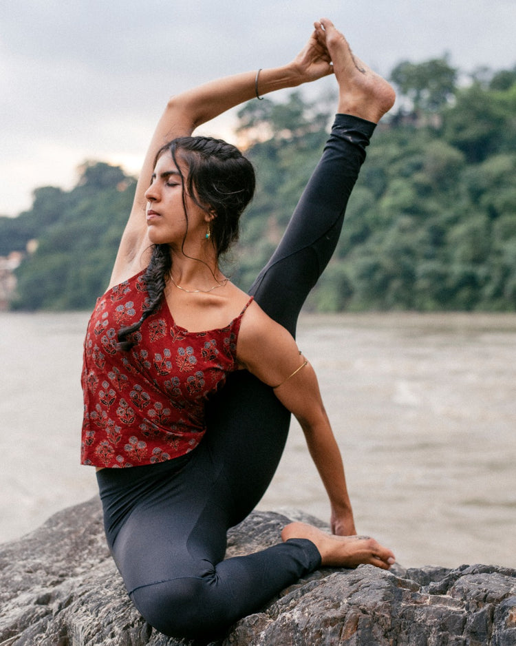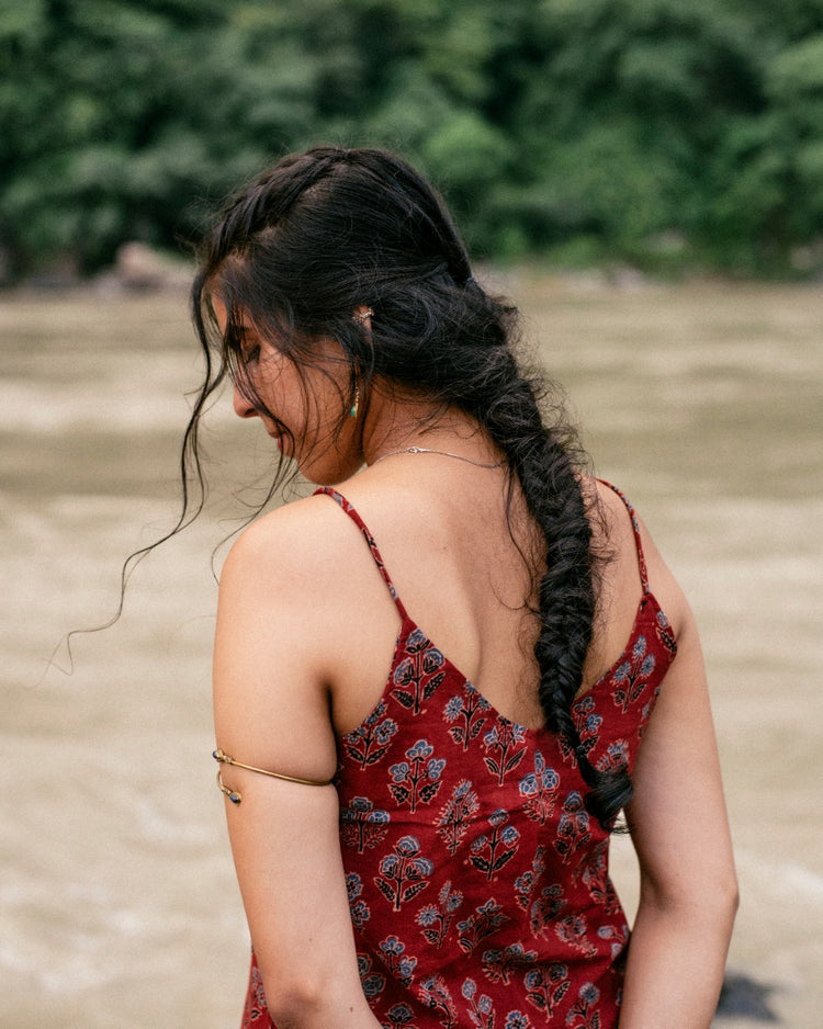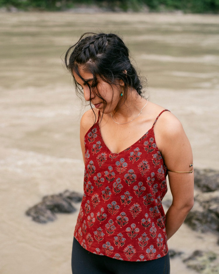 RED FLORAL AJRAKH SPAGHETTI TOP