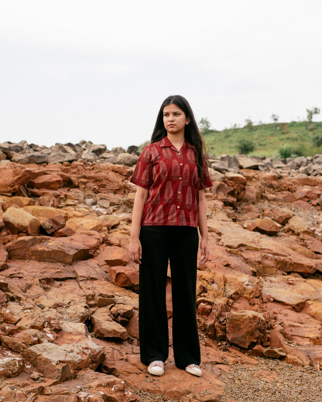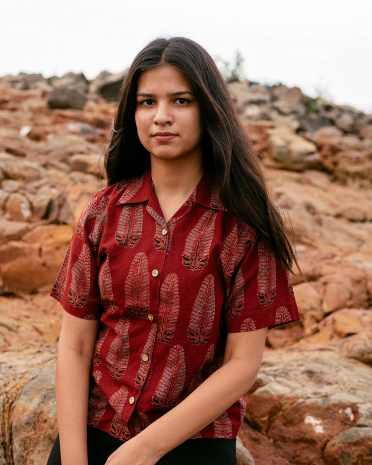 RED LONG LEAF AJRAKH SHIRT