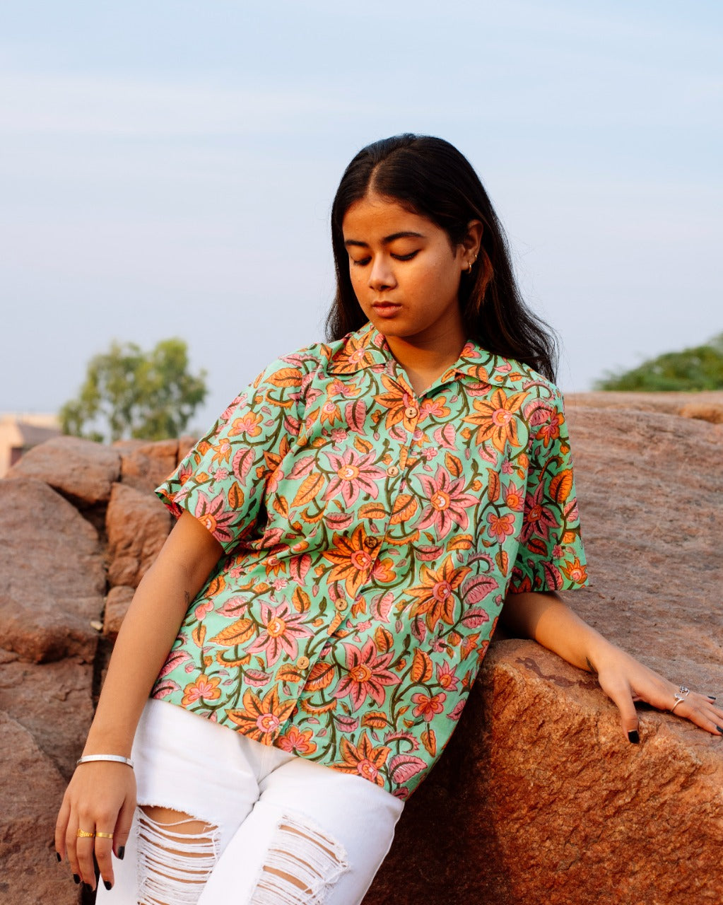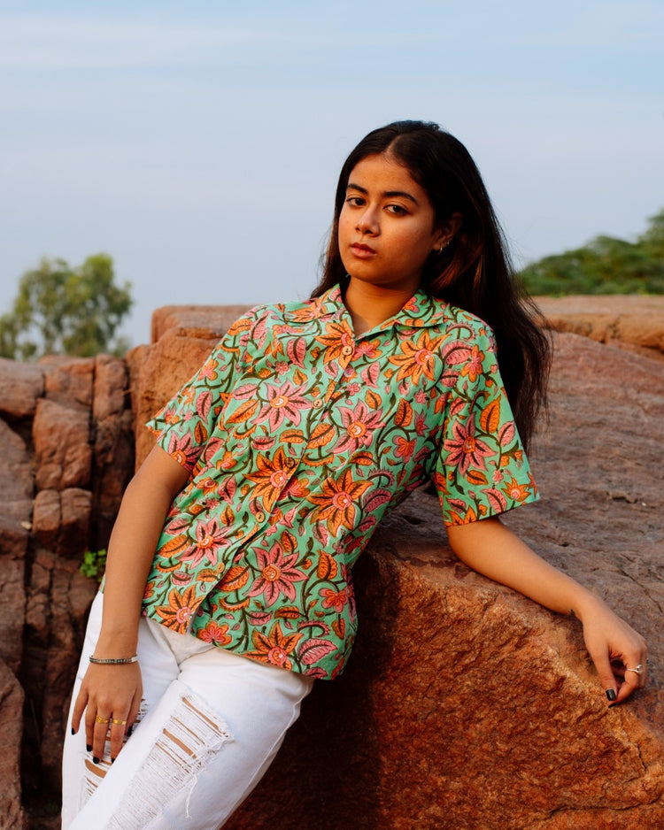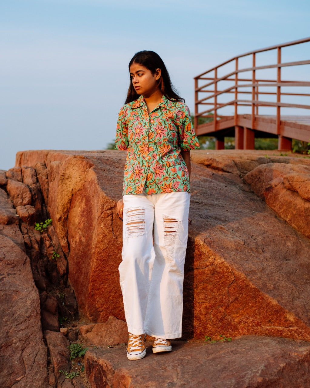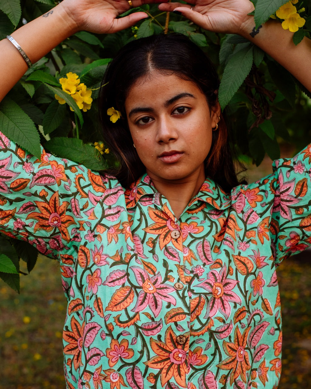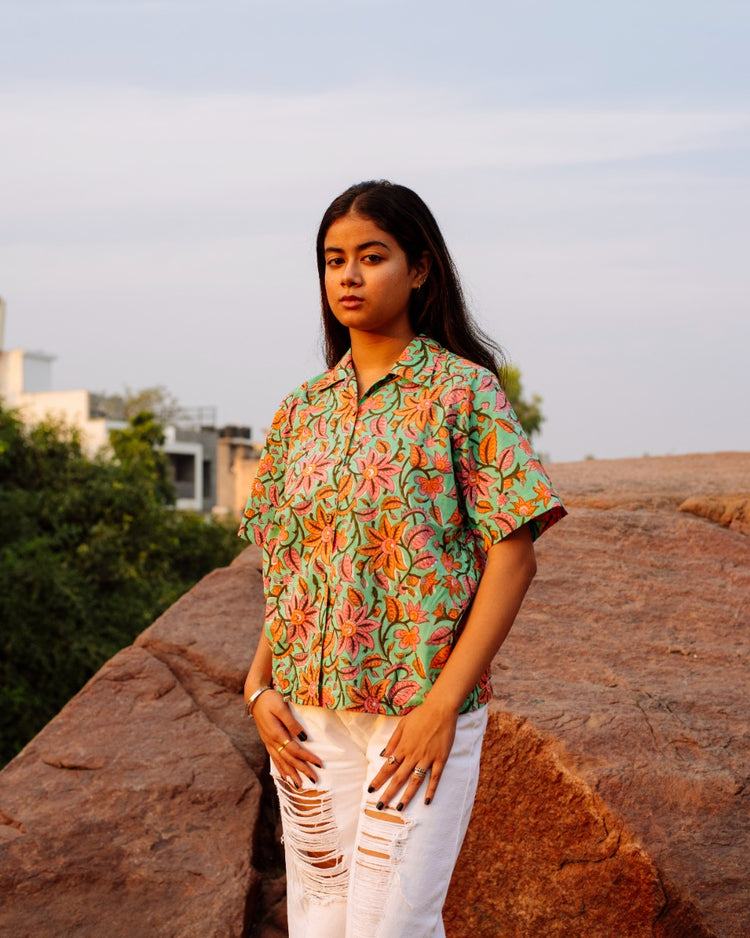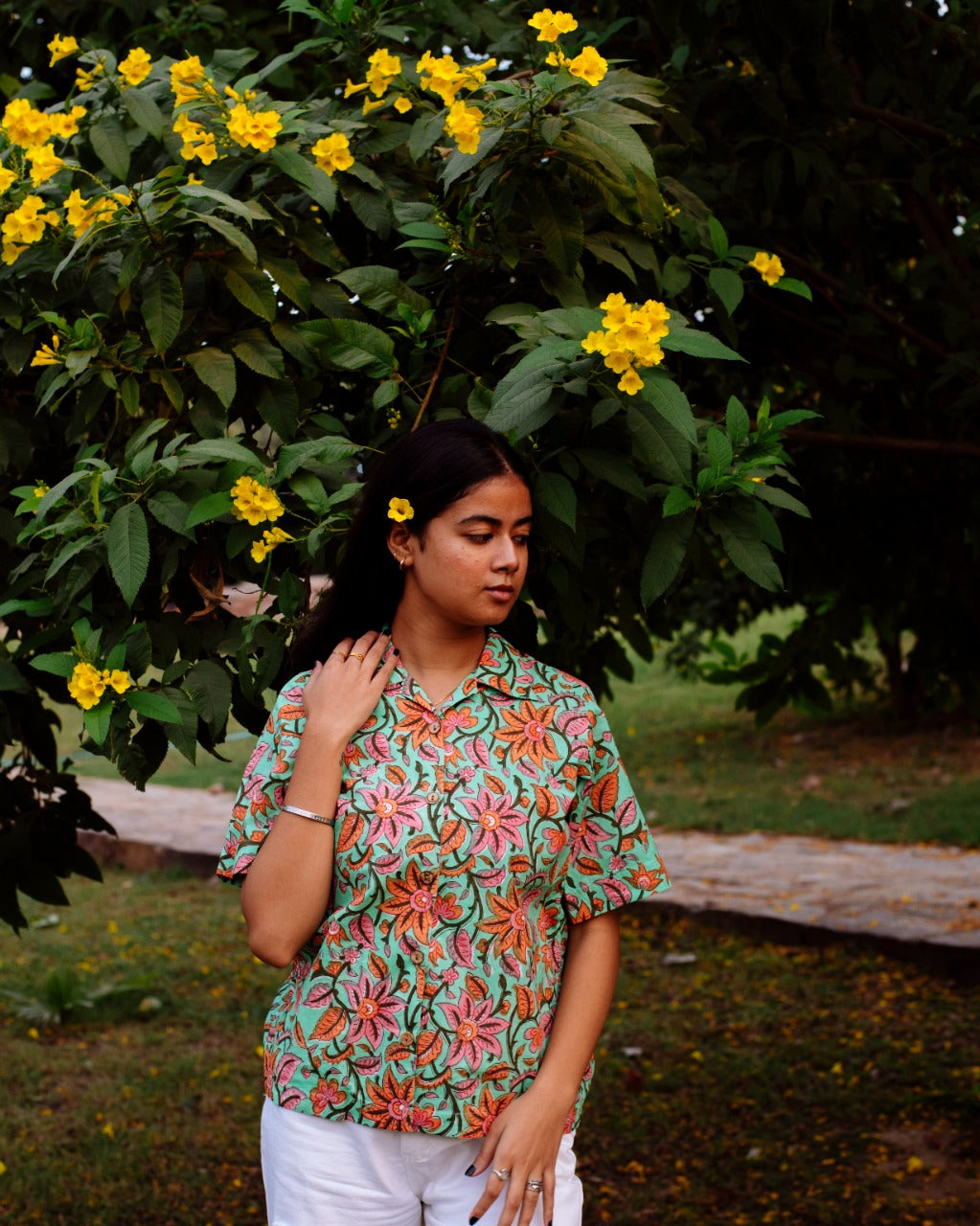 Sanganeri/Rapid is a Rajasthani block printing method that includes hand printing the fabric on the table with intricately designed blocks. It entails carefully patterning the cloth to ensure symmetry. The elaborate motifs on the block include beautiful floral designs of buds, flowers, leaves, mangoes, and, on occasion, jhumakas.