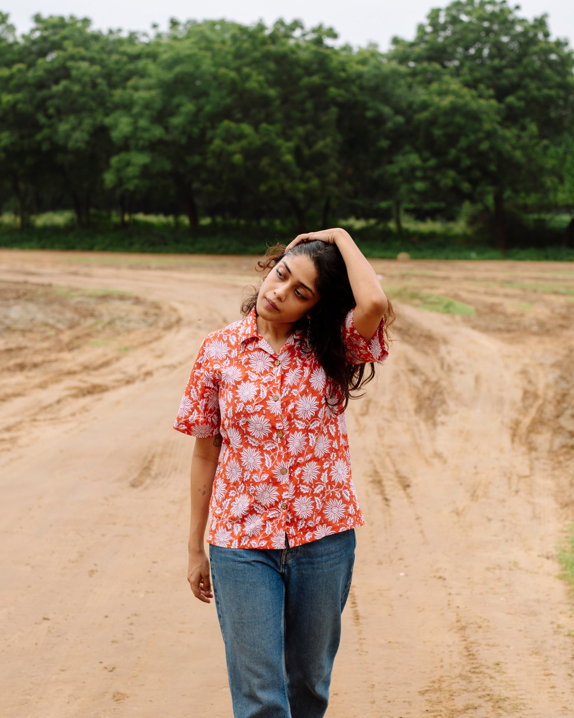 Sanganeri/Rapid is a Rajasthani block printing method that includes hand printing the fabric on the table with intricately designed blocks. It entails carefully patterning the cloth to ensure symmetry. The elaborate motifs on the block include beautiful floral designs of buds, flowers, leaves, mangoes, and, on occasion, jhumakas.