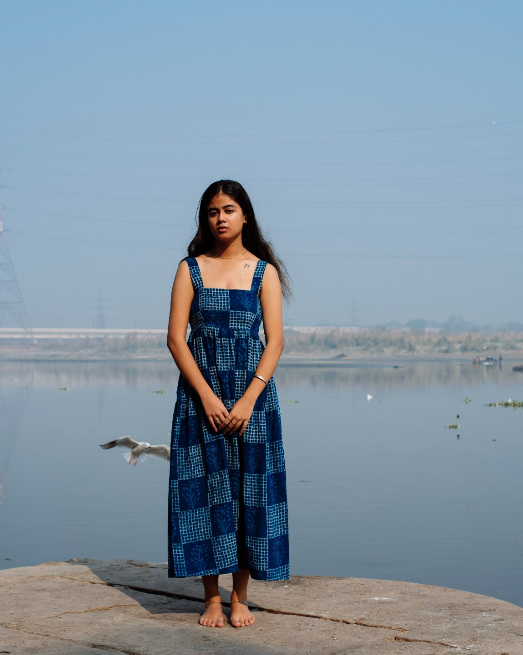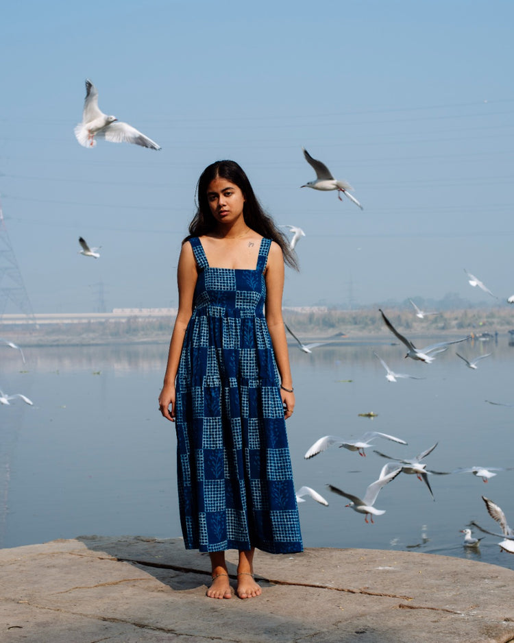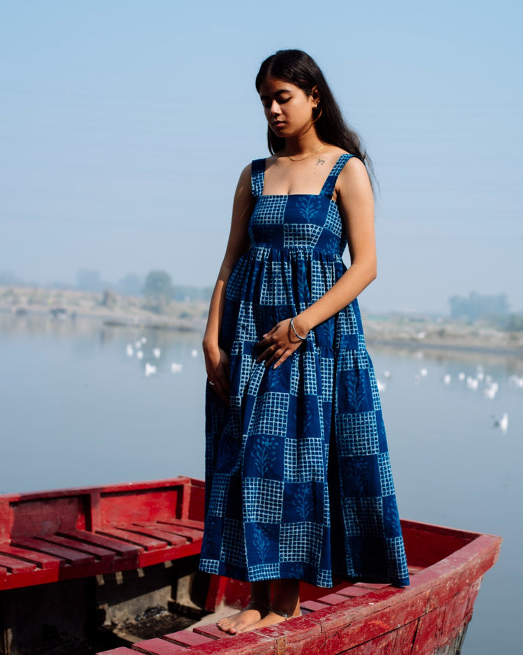TIC TAC TOE INDIGO DABU MAXI DRESS
